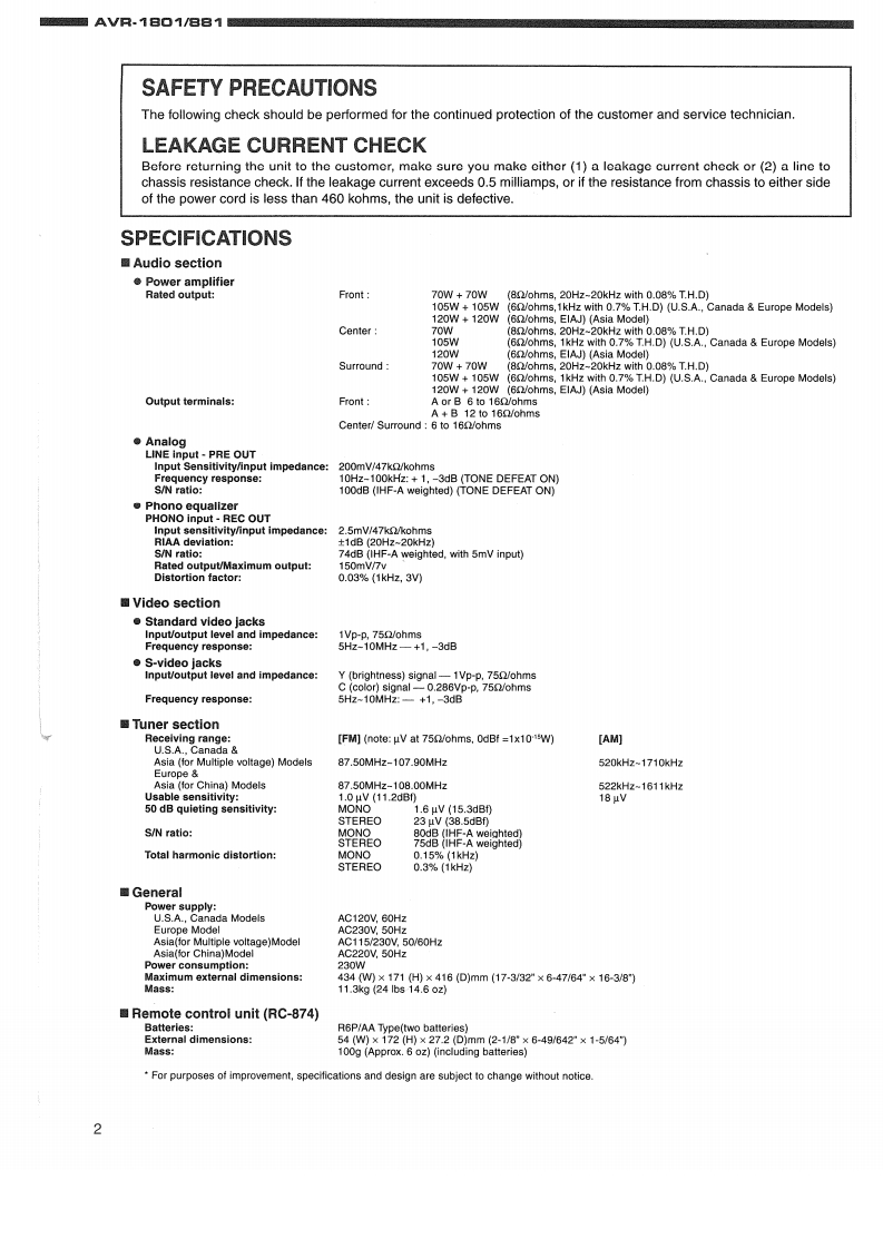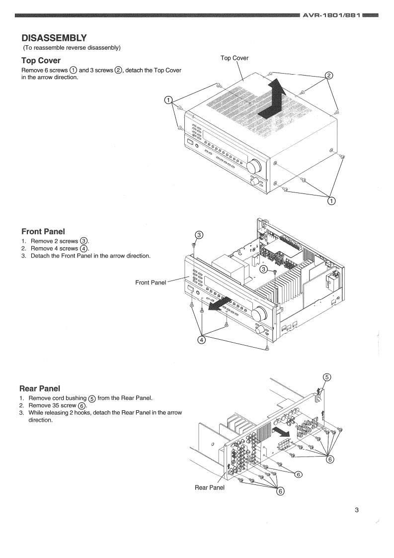 DENONHi-Fi ComponentSERVICE MANUALMODEL AVR.18▣1/881AV SURROUND RECEIVER8-6666-668百言马苦首08-TABLE OF CONTENTS-SAFETY PRECAUTIONS.2PACKING VIEW ........38SPECIFICATIONS2PARTS LIST OF PACKING ACCESSORIES.......38DISASSEMBLY.3BLOCK DIAGRAM.....39CL0 CK FLOW…gWIRING DIAGRAM....40LEVEL DIAGRAMS5,6SCHEMATIC DIAGRAMS.41-48ADJUSTMENT....78(1/8)MAIN UNIT.VOLTAGE SEL UNIT41SEMICONDUCTORS.9.15(2/8)INPUT UNIT........42PRINTED WIRING BOARDS16-23(3/8)FRONT UNIT,TACT S/W UNITNOTE FOR PARTS LIST.24H/P.POWER S/W UNIT ..........43(48)CPU UNIT...44PARTS LIST OF P.W.B.UNIT ASS'Y ...................24-3536(5/8)CNT UNIT,PRE-AMP UNIT.45EXPLODED VIEW…(6/8)VIDEO UNIT,S-VIDEO UNIT46PARTS LIST OF EXPLODED VIEW(7/8)TUNER UNIT47(8/8)DSP UNIT48Some illustrations using in this service manual are slightly different from the actual set.NIPPON COLUMBIA CO.,LTD.