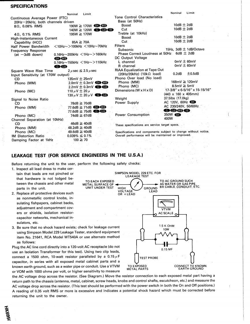 1∂The Harman KardonModel HK6950RManual 187AINTEGRATED AMPLIFIERTechnical Manualharman kardon HK65a明The following marks found in the parts list of this manualidentify the models as follows.North America area model Black versionGerman modelB:German model Black versionInternational model Black versionAsia/Oceania model Black versionCONTENTSSPECIFICATIC0NS…2GENERAL UNIT PARTS LIST........6LEAKAGE TEST+4…2GENERAL UNIT…7DISASSEMBLYPROCEDURES...3P.C.B0ARDS…8POWER CORD REPLACEMENT................3ELECTRICAL PARTS LIST.12ALIGNMENT PROCEDURES............................4SCHEMATIC DIAGRAMS...21BLOCK DIAGRAM..WIRING DIAGRAM.…26CONTROLS&FUNCTIONS…5harman/kardonParts and Service Office240 Crossways Park West,Woodbury,N.Y.11797