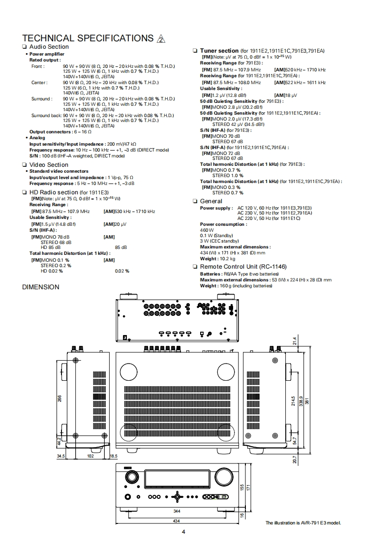 DENONVer.4Please refer to theMODIFICATION NOTICE.SERVICE MANUALMODELJPE3E2EKEAE1E1K E1CAVR-19112AVR-791AV SURROUND RECEIVERFor purposes of improvement,specifications and design are subject to change without notice.Please use this service manual with referring to the operating instructions without fail.Some illustrations using in this service manual are slightly different from the actual set.