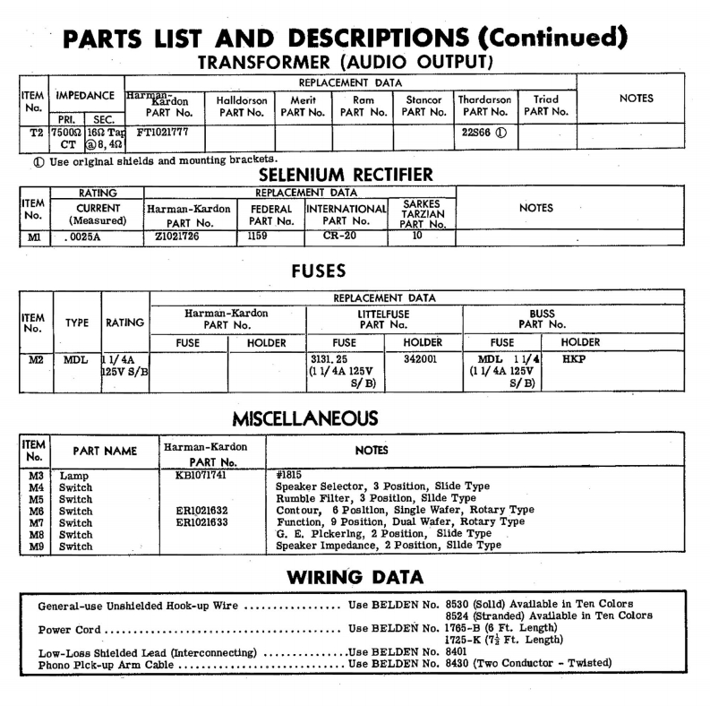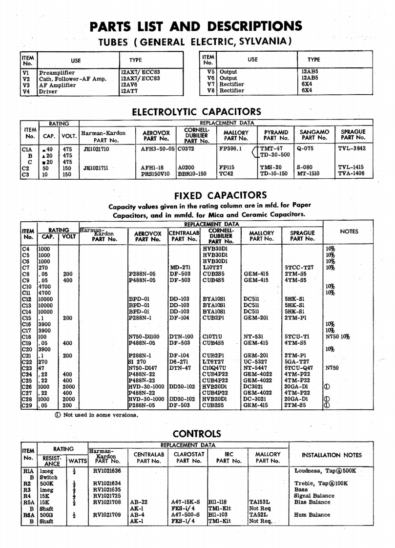 HARMAN-KARDONMODEL A-120 (Melody II)666TYPE SETAC Operated 6 Channel 20 Watt Audio AmplifierTUBES (Eight)Types 12AX7/ECC83 Preamplifier,12AX7/ECC83 Cath.Follower-AF Amp.,12AV6 AF Amplifier,12AT7 Driver,(2)12AB5 Output,(2)6X4 RectifierPOWER SUPPLY105-125 Volts AC-60 CyclesRATING 8 Amp @117 Volts AC (83 Watts)