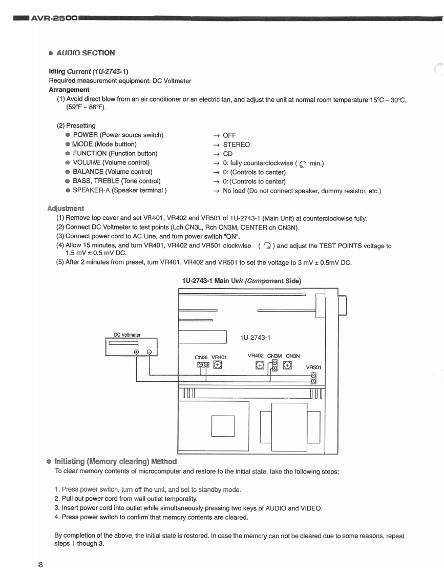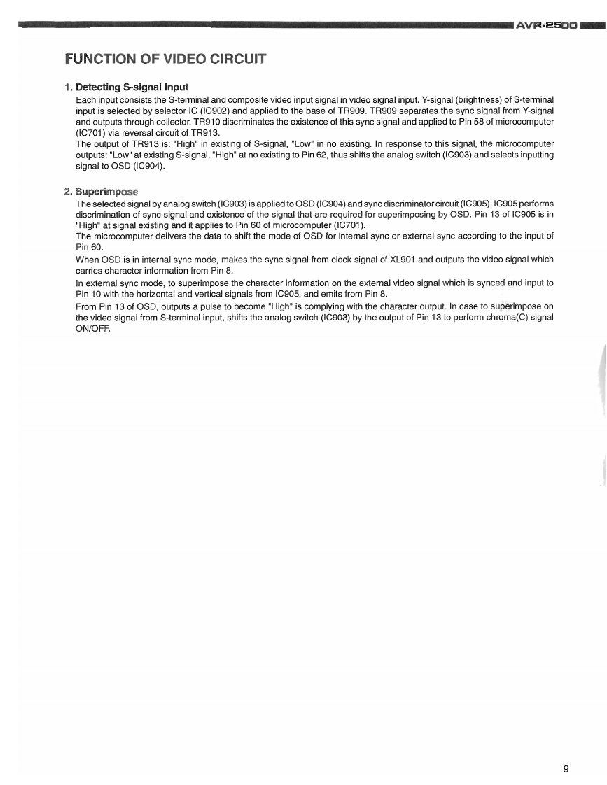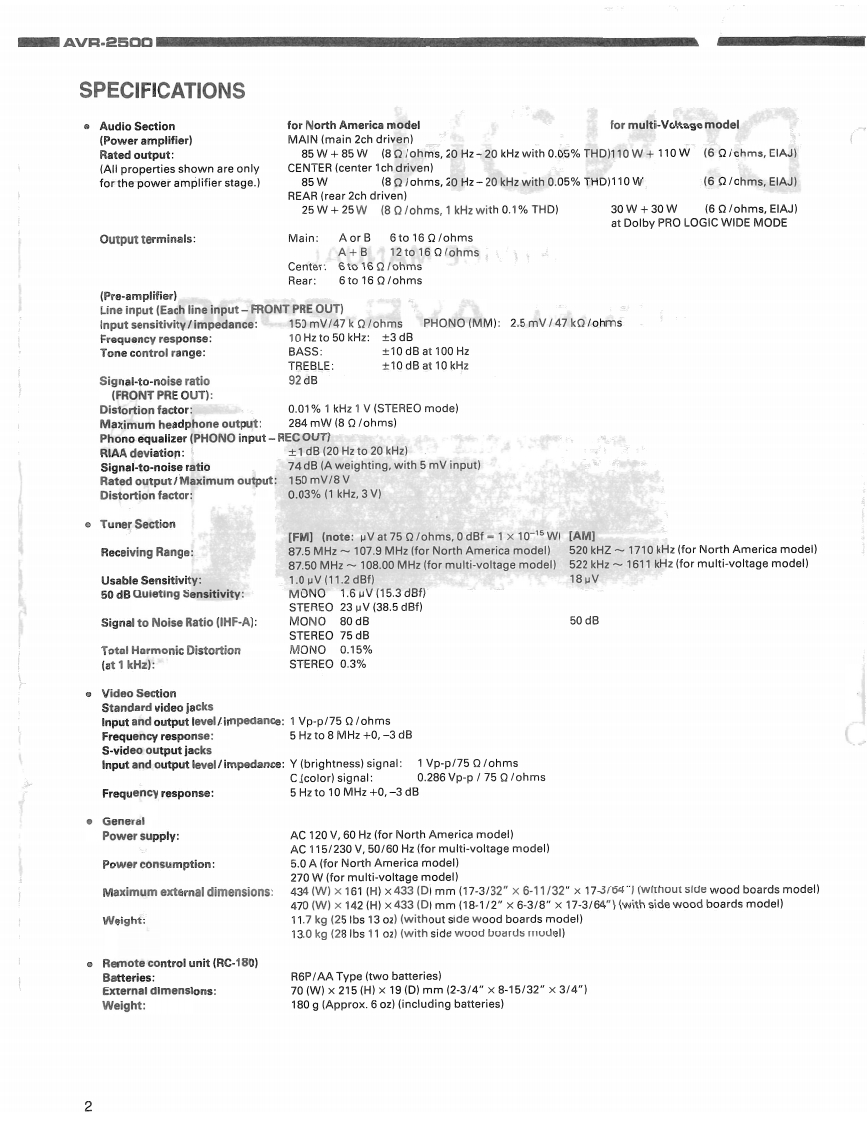 DENONHi-Fi AV Surround ReceiverSERVICE MANUALMODEL AVR-2500AV SURROUND RECEIVER000Te photogr aph show tne Av?-2500 (black).(vithout sid wood bc ards)CONTEVITSSPECIFICATIONS…2WIREARRANGEMENT ................................................................3DISASSEMBLY........................................................................45ADJUSTMENT6-8FUNCTIONOFVIDEOCIRCUIT...................................................................9SEMICONDUCTORS......................................................................PRINTEDWIRING BOARD..................PRINTEDWIRING BOARDPARTS LIST.........................................................-31WIRINGDIAGRAM.............................................................................32BLOCK DIAGRAM433SCHEMATIC DIAGRAM-(14.(12.3/4.(44).......34-37EXPLODED VIEW(FSHASSIS AND CABINET.79心5 PLODED旧W,…39ADDENDUMPARTSLIST................................................................4REMOTE CONTROL UNIT(RC-180)............................................................40,41PARTSLIST.............................................................................SCHEMATIC DIAGRAM..................................................................NIPPON COLUMBIA CO.LTD