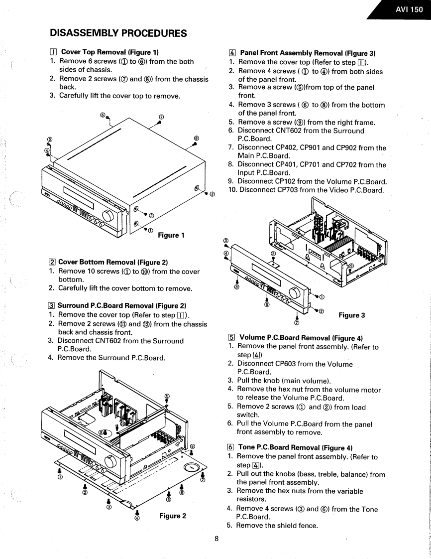The Harman KardonModel AVI150Manual AAUDIO AND VIDEO AMPLIFIERTechnical Manualhamman./kardon A销l508888888-。o⊙⊙⊙CONTENTS■SPECIFICATIONS…2GENERAL UNIT…18LEAKAGE TESTPRINTED CIRCUIT BOARDS ......................20CONTROLS AND FUNCTIONS44+44…4ELECTRICAL PARTS LIST.................26BLOCK DIAGRAM…6SEMICONDUCTOR LEAD IDENTIFICATIONDISASSEMBLY PROCEDURES...............8INTERNAL DIAGRAM44…31CIRCUIT DESCRIPTION............10PACKAGE…37TROUBLESHOOTING…15WIRING DIAGRAM*+1*38GENERAL UNIT PARTS LIST.....................17SCHEMATIC DIAGRAMS (I,II,III,IV)…39harman/kardonParts and Service Office80 Crossways Park West,Woodbury,N.Y.117971112-AVI150A G9603 1200 Printed in Korea