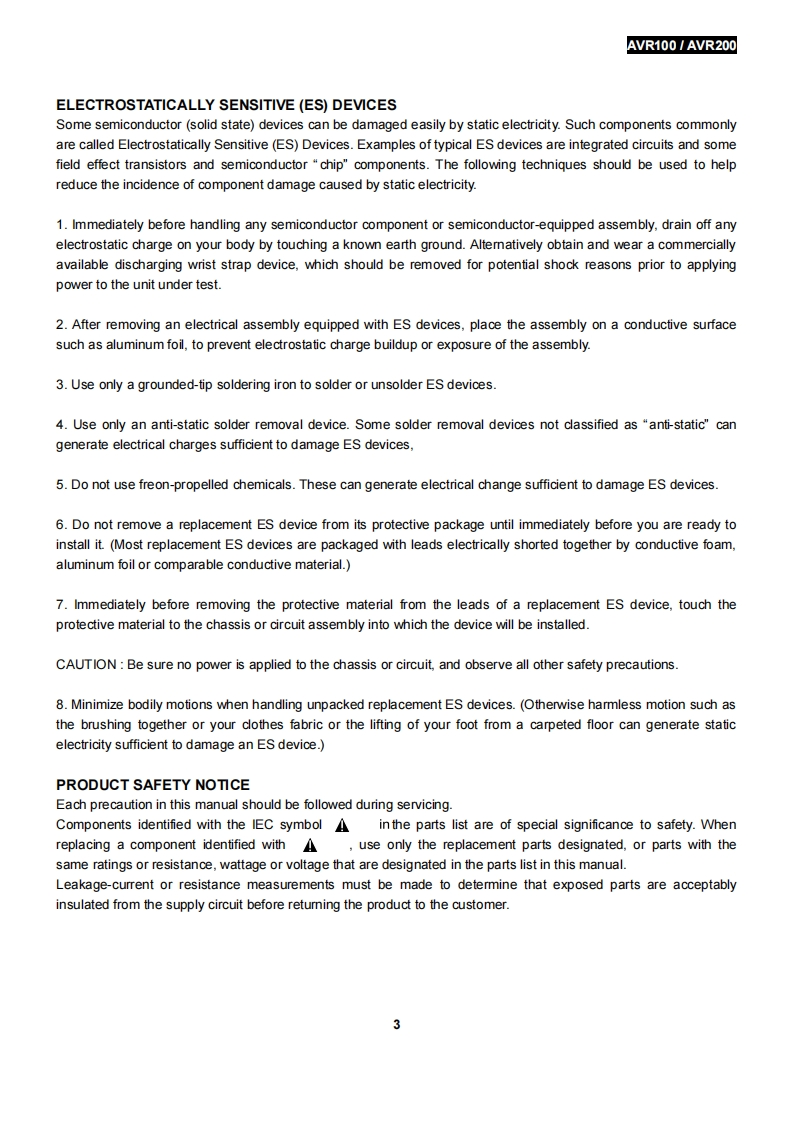 The Harman KardonModel AVR100/AVR200Manual AAUDIO AND VIDEO RECEIVERTechnical Manualharman/kardon AR65682r”2O○○CONTENTSSPECIFICATIONS.....2EXPLODED VIEW....ELECTROSTATICALLY SENSITIVE (ES)DEVICES......335PRINCIPAL SCREW LOCATIONS...37LEAKAGE TEST.........4ELECTRICAL PARTS LIST.....43ALIGNMENT PROCEDURES..5 IC BLOCK DIAGRAMS.71CONTROLS AND FUNCTIONS.....8P.C.BOARDS....85CIRCUIT DESCRIPTION.11SCHEMATIC DIAGRAMS...............93BLOCK DIAGRAM....30WIRING DIAGRAM....101DISASSEMBLY PROCEDURES.....31PACKING MATER LAI.AND PARTS LIST.........102harman/kardonParts and Service Office250 Crossways Park Dr,Woodbury,N.Y.117971112 AVR100 /AVR200 1200 Printed in Korea