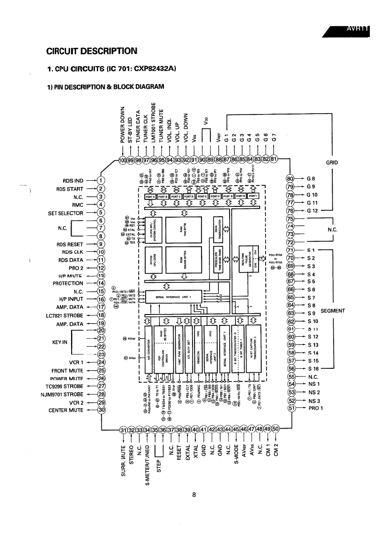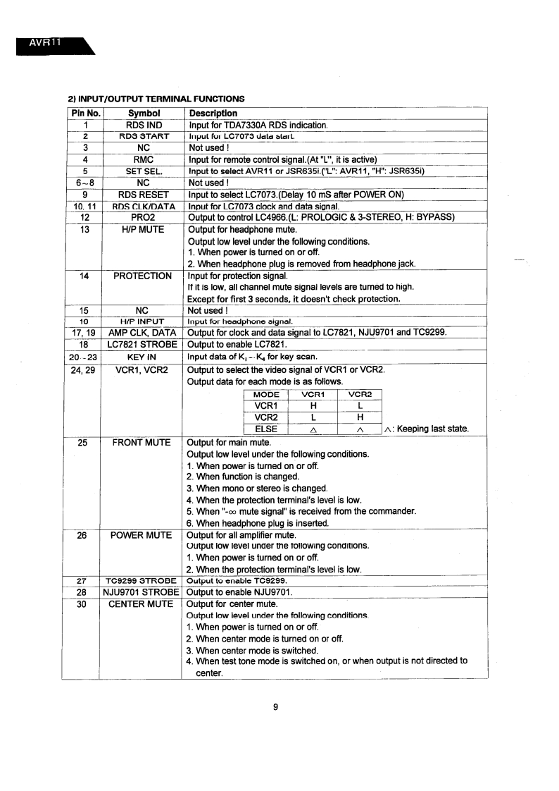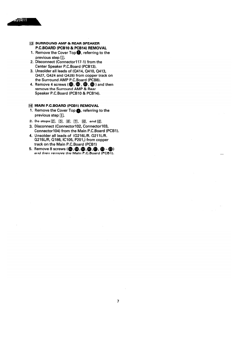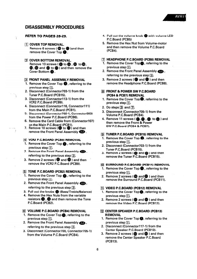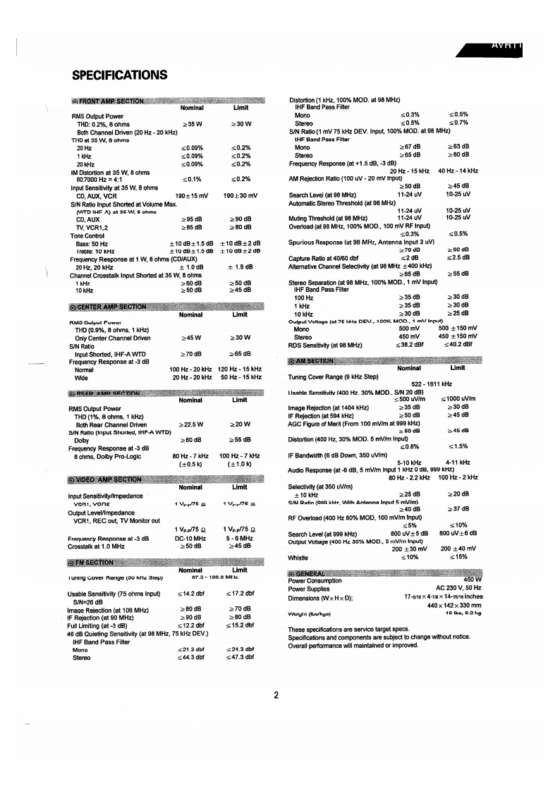 The Harman KardonModel AVR11Manual AAUDIO AND VIDEO RECEIVERTechnical Manualharman/kardon AIR ll器0⊙@00Q,⊙0000是日8888888=g666CONTENTS■SPECIFICATIONS…2PRINTED CIRCUFT BOARDS.......27LEAKAGE TEST .....4……3FI ECTRICAL PARTS LIST ............................30CONTROLS AND FUNCTIONS4IC FUNCTIONAL BLOCK DIAGRAM………36BL0 CK DIAGRAM4…5VIRING DIAGRAM+……40DISASSEMBLY PROCEDURES .....................6SCHEMATIC DIAGRAM(①…41CIRCUIT DESCRIPTION ................................8SCHEMATIC DIAGRAM⑩…42ALIGNMENT PROCEDURES....19SCHEMATIC DIAGRAM(m)…43TROUBLESHOOTING....--.-..…22SCHEMATIC DIAGRAM (IV)...................44GENERAL UNIT PARTS LIST .......................25REAR PANEL CONNECTIONS............45GENERAL UNIT EXPLODED VIEW ..............-..-26PACKAGE4…46harman/kardonParts and Service Office