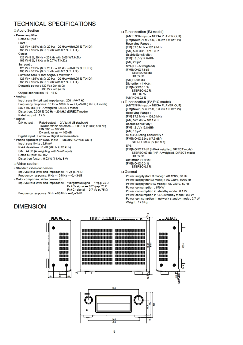 DENONVer.6Please refer to theMODIACATION NOTICESERVICE MANUALMODELJPE3E2EKEAE1C E1KE1CAVR-3313CIAVR-3313INTEGRATED NETWORK AV RECEIVERFor purposes of improvement.specifications and design are subject to change without notice.Please use this service manual with referring to the operating instructions without fail.Some illustrations using in this service manual are slightly different from the actual set.DENOND&M Holdings Inc.