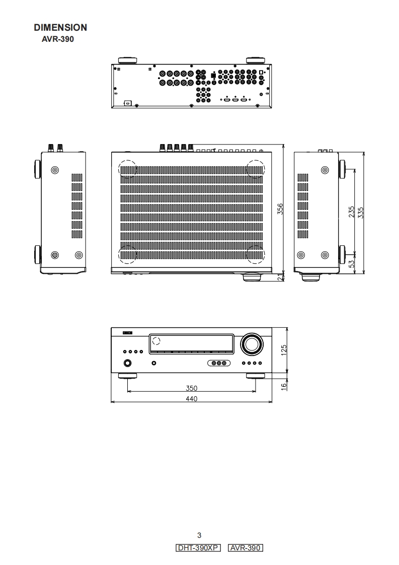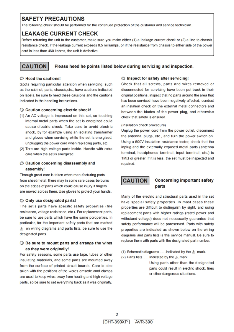 DENONVer.3Please refer to theMODIRCATION NOTICESERVICE MANUALMODELJPE3E2EKK2AE1C E1KEUTDHT-390XP5.1CH HOME THEATER SYSTEM5.1CH HOME THEATER SYSTEM(DHT-390XP)consists ofAV SURROUNDRECEIVER(AVR-390)and SPEAKER SYSTEM(SYS-390HT)MODELJPE3E2EKK2A E1CE1K EUTAVR-390公AV SURROUND RECEIVERFor purposes of improvement.specifications and design are subject to change without noticePlease use this service manual with referring to the operating instructions without fail.Some illustrations using in this service manual are slightly different from the actual set.DENOND&M Holdings Inc.S0032-0V03DWDG1002