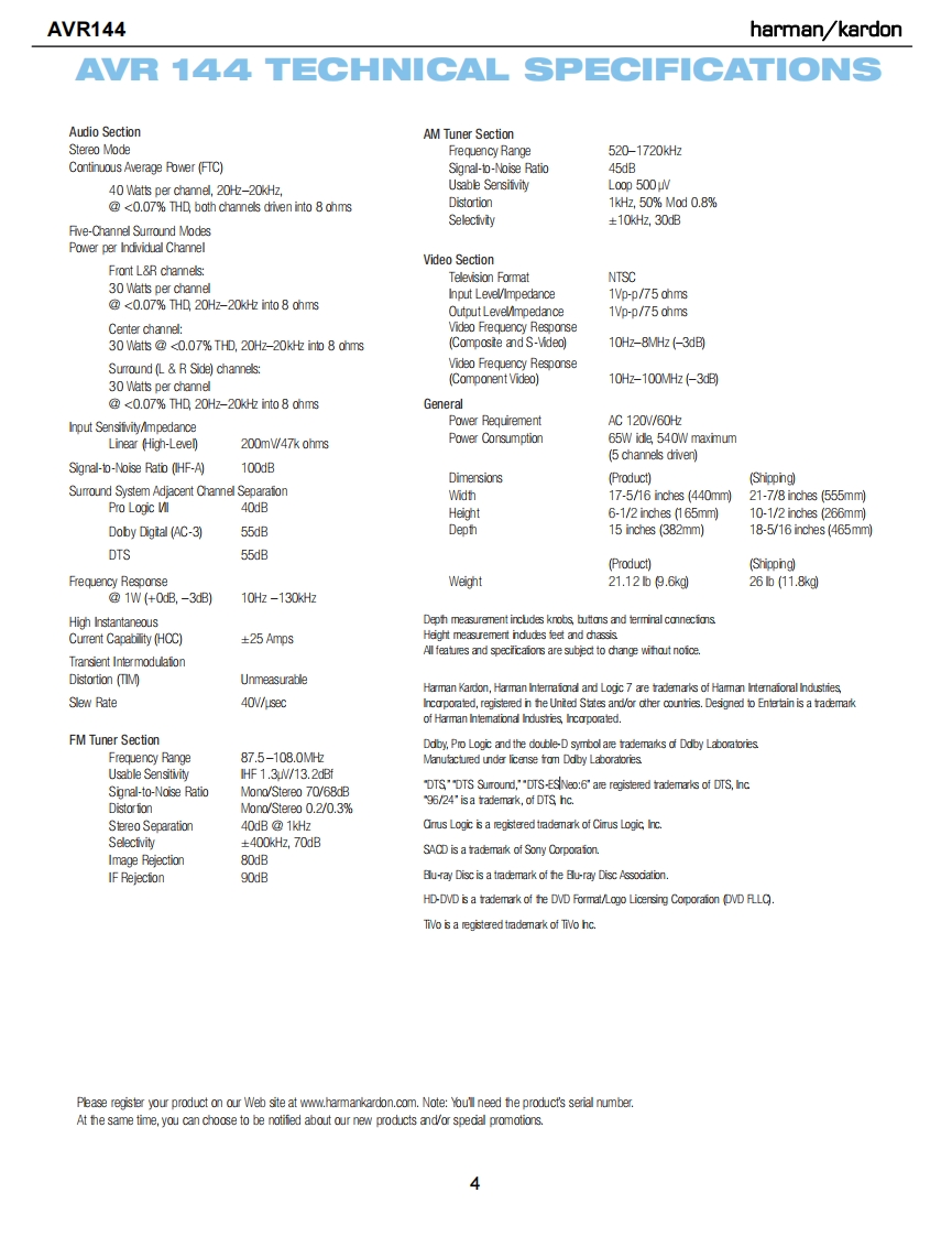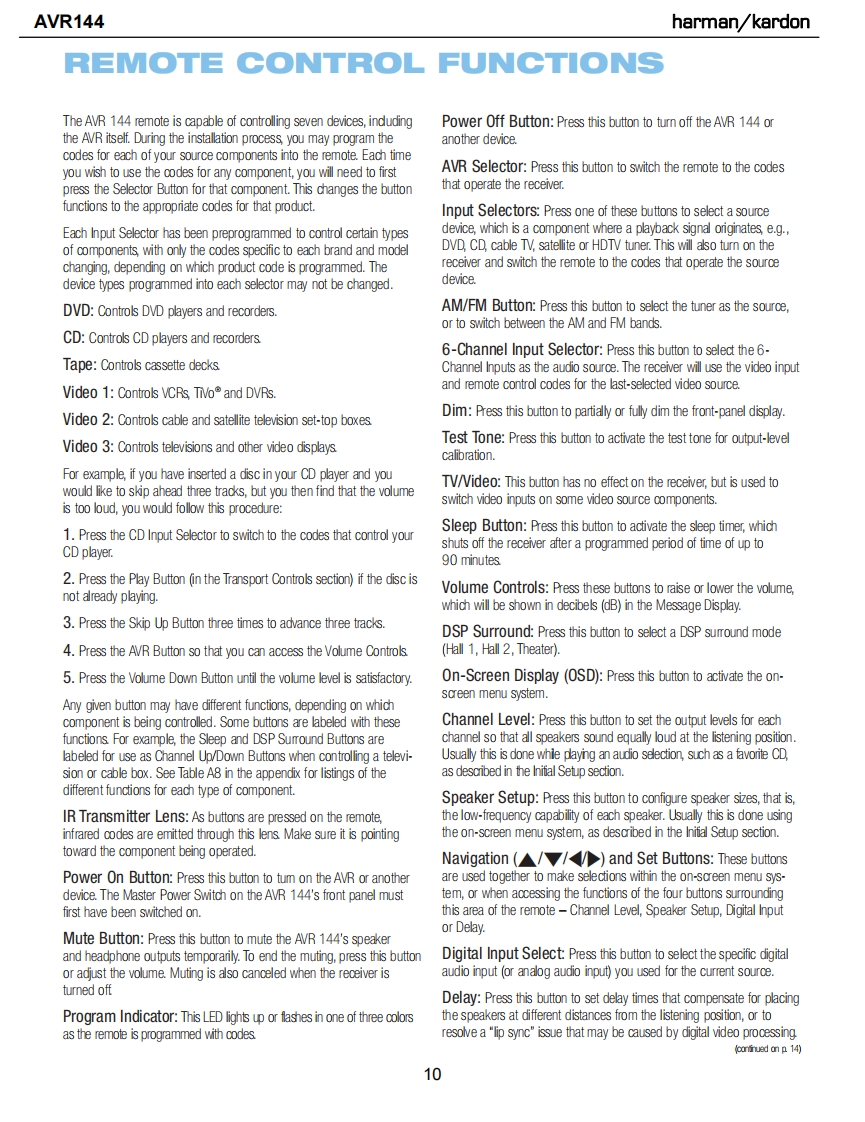 harman/kardonAVR1445 X 30W 5.1 CHANNEL AV RECEIVERSERVICE MANUALANR图5脑DV0/ANAL0G四吕四L0GIC75CHCI口o日harman/kardon⊙⊙0CONTENTSESD WARNING........2DISASSEMBLY...............28LEAKAGE TESTING..........3UNIT EXPLODED VIEW.........................31BASIC SPECIFICATIONS...................4EXPLODED VIEW PARTS LIST...............32PACKAGING.5AMP BIAS ADJUSTMENT...................33FRONT PANEL CONTROLS........6BLOCK DIAGRAM.34REAR PANEL CONNECTIONS..........8PCB DRAWINGS................35REMOTE CONTROL FUNCTIONS..........10ELECTRICAL PARTS LIST.......42CONNECTIONS/INSTALLATION...........13SEMICONDUCTOR PINOUTS...............69OPERATION..22SCHEMATICS............151TROUBLESHOOTING GUIDE.............27WIRING DIAGRAM.......................158REMOTE PROCESSOR RESETS..........27haman/kardon,Inc.250 Crossways Park Dr.Woodbury,New York 11797Rev02I2007
