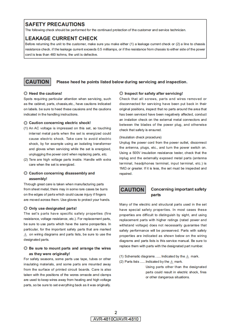 DENONVer.4Please refer to theMODIFICATION NOTICE.SERVICE MANUALMODELJPEUECE2EKE2AE1CEUTAVR-4810CI√AVR-48102yAV SURROUND RECEIVERFor purposes of improvement,specifications and design are subject to change without notice..Please use this service manual with referring to the operating instructions without fail.Some illustrations using in this service manual are slightly different from the actual set.DENOND&M Holdings Inc.S0033-0V03 DWDG1002