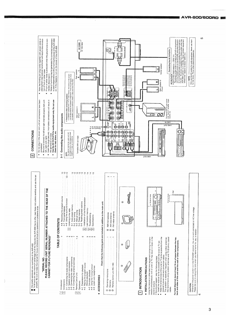 DENONHi-Fi AV Surround ReceiverSERVICE MANUALODEL AVR.6O▣/G▣ORDAV SURROUND RECEIVERP阳LOGIC6666白白晋白δ心peGA】(Model:AVR-600)PAO LOGIC666白白台白白s(Model:AVR-600RD)-TABLE OF CONTENTS-OPERATING INSTRUCTIONS..2-8EXPLODED VIEW30WIRE ARRANGEMENT.9PARTS LIST OF EXPLODED VIEWDISASSEMBLY10ADDENDUM PARTS LIST....31CONNECTION DIAGRAM OF MEASURING INSTRUMENTS ....11BLOCK DIAGRAM...32SEMICONDUCTORS.......12-20WIRING DIAGRAM........33NOTE FOR PARTS LIST .....21REMOTE CONTROL UNIT(RC-195)34PARTS LIST OF P.W.BOARD22-SCHEMATIC DIAGRAM.35-3PRINTED WIRING BOARD....26-29Some illustration using in this service manual is slightly different from the actual set.NIPPON COLUMBIA CO,LTD.