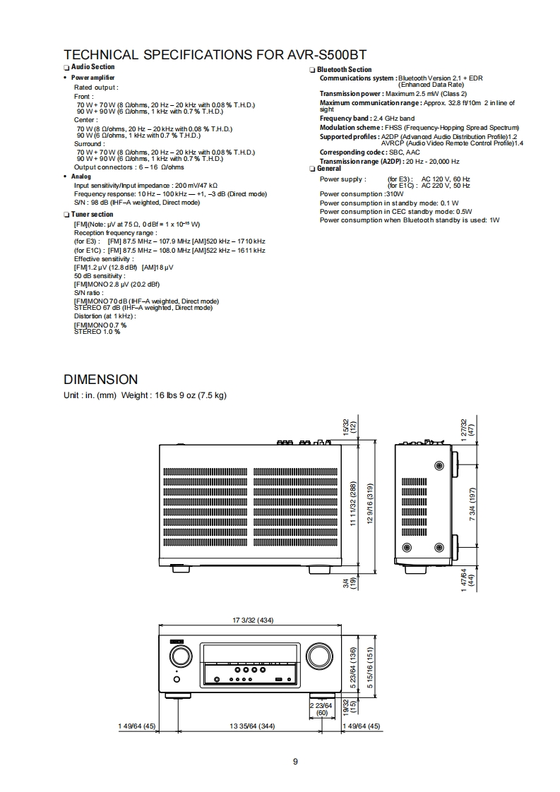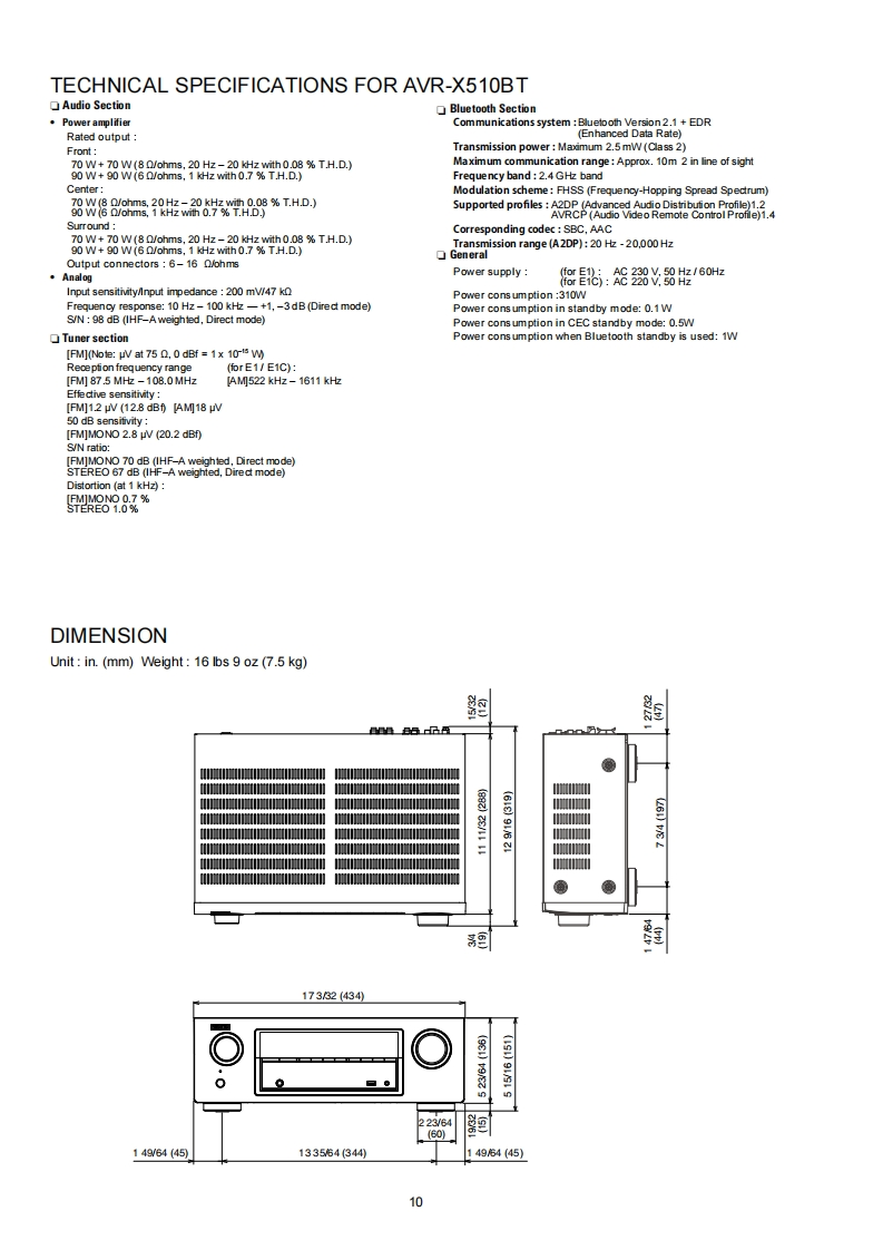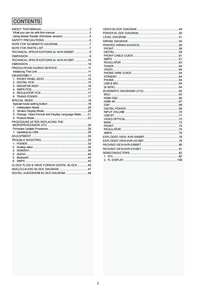 DENONVer.3Please refer to theMODIRCATION NOTICE.SERVICE MANUALMODELJPE3E2EKEAE1E1C E1KAVR-S500BT√AVR-X510BTAV SURROUND RECEIVERFor purposes of improvement.specifications and design are subject to change without notice.Please use this service manual with referring to the operating instructions without fail.Some illustrations using in this service manual are slightly different from the actual set.DENOND&M Holdings Inc.