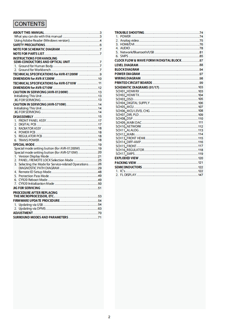 DENONVer.1SERVICE MANUALMODELJPE3E2EKEAE1E1C E1KAVR-X1200WAVR-S710WINTEGRATED NETWORK AV RECEIVERFor purposes of improvement.specifications and design are subject to change without notice.Please use this service manual with referring to the operating instructions without fail.Some illustrations using in this service manual are slightly different from the actual set.DENOND&M Holdings Inc.