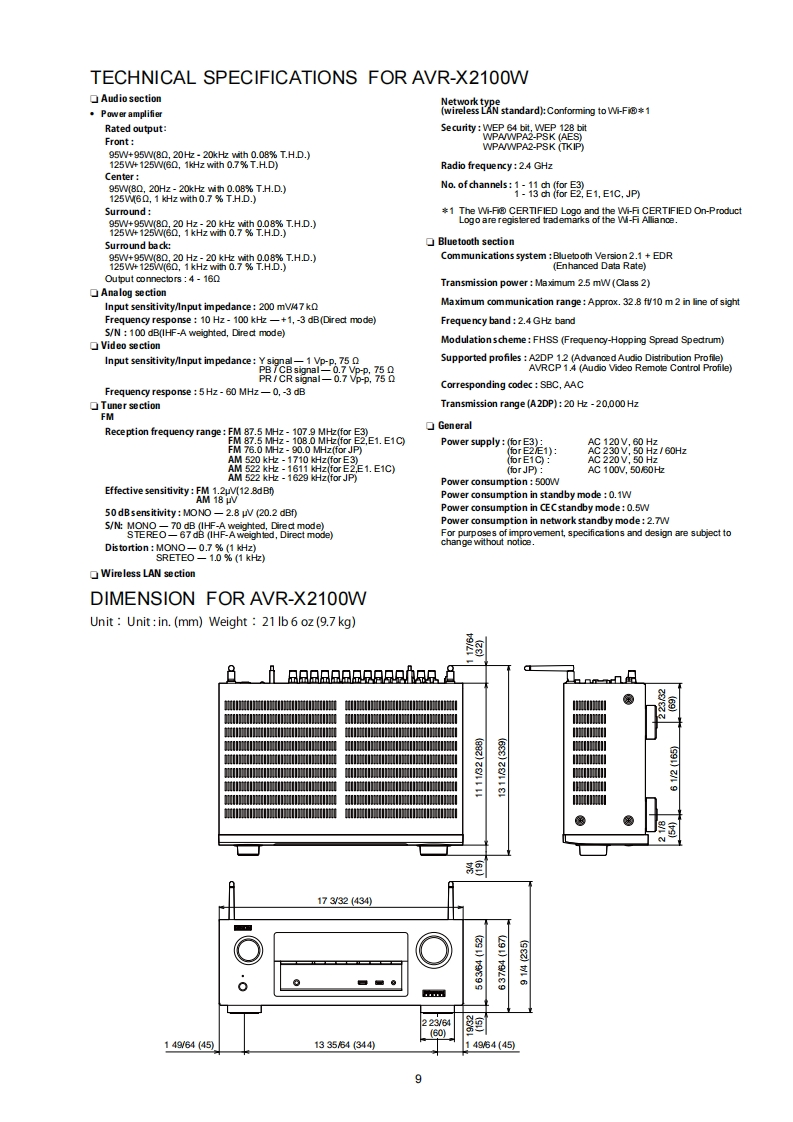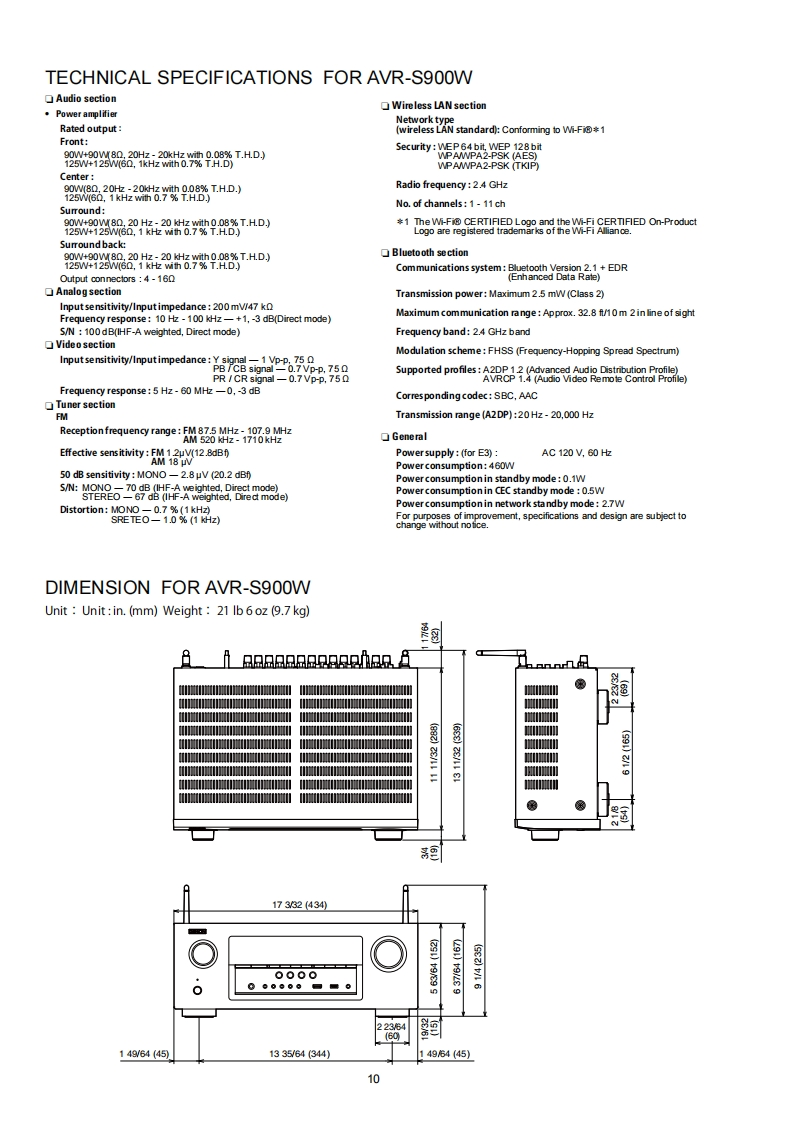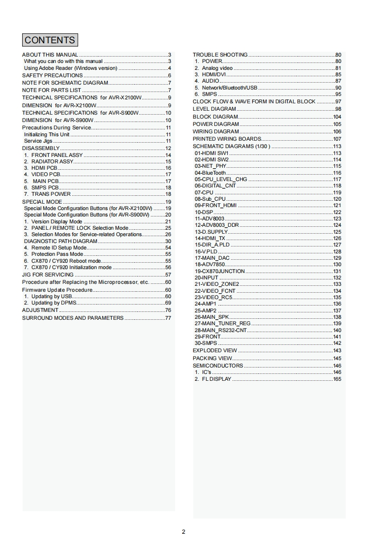 DENONVer.2Please refer to theMODIRCATION NOTICE.SERVICE MANUALMODELJPE3E2EKEAE1E1C E1KAVR-X2100WAVR-S900WINTEGRATED NETWORK AV RECEIVERFor purposes of improvement.specifications and design are subject to change without notice.Please use this service manual with referring to the operating instructions without fail.Some illustrations using in this service manual are slightly different from the actual set.DENOND&M Holdings Inc.