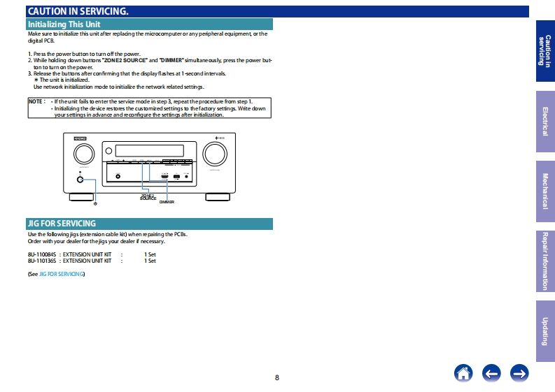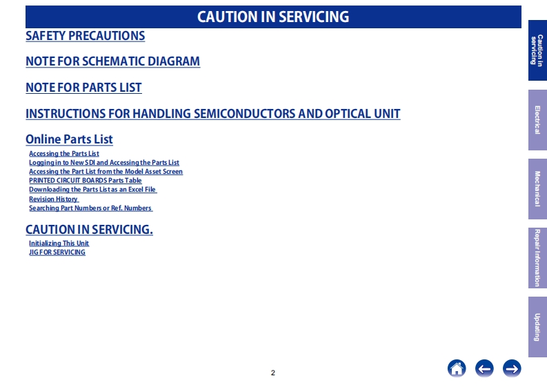 DENONService ManualVer.2INTEGRATED NETWORK AV RECEIVERAVR-X3400HClick here!On-line service parts listhttp:Mdmedia dmglobalcom/Docume nt/Docume ntpDotails 23185Online Parts List (P5 to P7)DENONWEB owner's manual (Release schedule)http:/manua ls.denon.com/AVRX3400HNA/EN/index.php (May 2017)i的Atnd5B-rayhttp:/manua.ls.denon.com/AYRX3400HEWVEN/index.php (June 2017)http:Mmanuals denon com/AVBX3400HAP/ZHindex.php (August 2017)PnY图CAUTIONIN SERVICINGELECTRICALMECHANICALREPAIR INFORMATIONUPDATINGFor purposes of improvement,specifcations and design are subject to change wthout notice.Please use this service manual wth referng to the operating instructons wthout fal.Please refer to the MODIFICATION NOTICE.Some ilustratons using in this service manual are slighdy dfferent fom the actual set