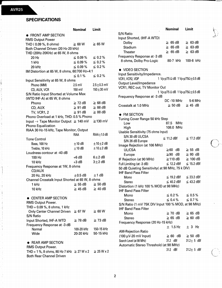 CThe Harman KardonModel AVR25Manual 188AAUDIO AND VIDEO RECEIVERTechnical Manual0oO■CONTENTSSPECIFICATIONS…2GENERAL UNIT PARTS LIST................28LEAKAGE TESTGENERAL UNIT…29CONTROLS AND FUNCTIONS4…5PRINTED CIRCUIT BOARDS…31DISASSEMBLY PROCEDURES.................7ELECTRICAL PARTS LIST...........37ALIGNMENT PROCEDURES......9ICS LEAD IDENTIFICATION.....46CIRCUIT DESCRIPTION…12SCHEMATIC DIAGRAMS55BLOCK DIAGRAM..…21TRANSISTORS…61WIRING DIAGRAM…23LEAD IDENTIFICATIONTROUBLE SHOOTING.25harman/kardonParts and Service Office240 Crossways Park West,Woodbury,N.Y.117971112-0330A152 G9212 1500 Printed in Korea