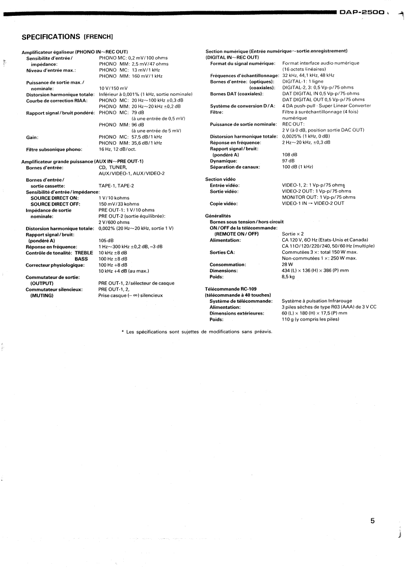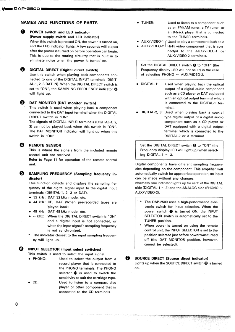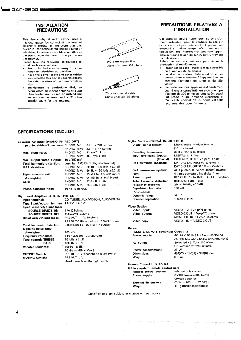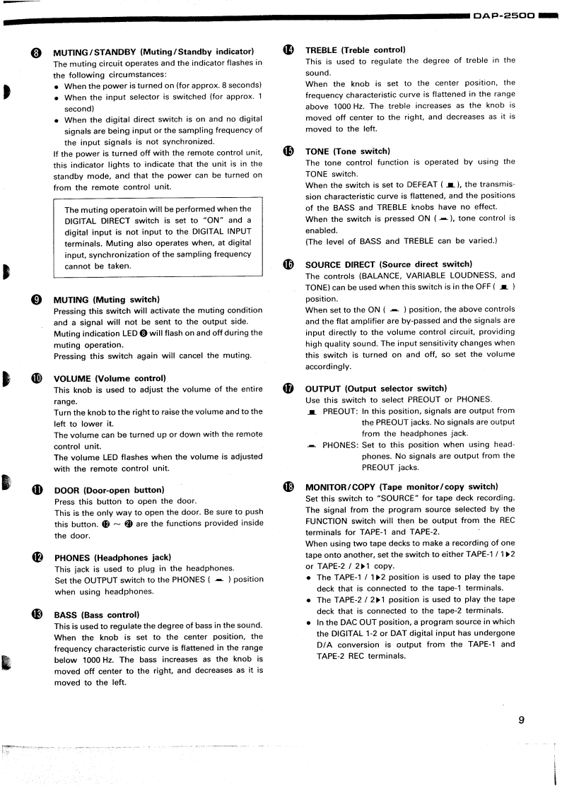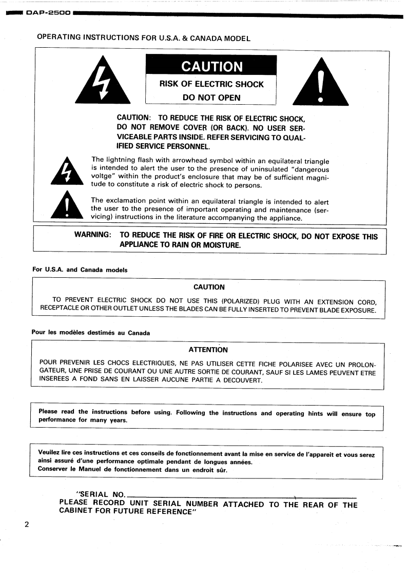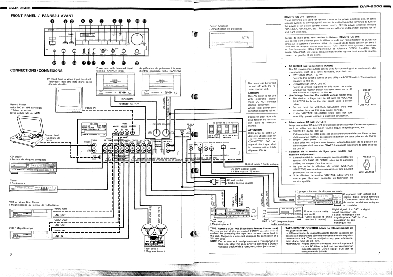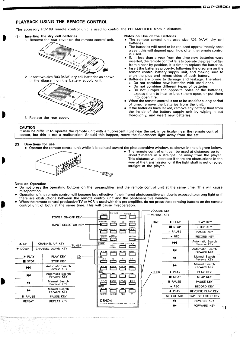 DENONHi-Fi Digital Audio PreamplifierSERVICE MANUALMODEL DAP-2500DIGITAL AUDIO PREAMPLIFIERTABLE OF CONTENTSOPERATING INSTRUCTIONS FOR U.S.A.CANADA MODEL......................2~13OPERATING INSTRUCTIONS FOR EUROPE U.K.MODEL......................14~25REMOVAL OF EACH SECTION,....,,,,,,,.·······26BLOCK DIAGRAM ........................................................2METHOD0 F ADJUSTMENTS..·28SEMICONDUCTORS...........PRINTED WIRING BOARD PARTS LISTKU-9160B PRE AMPUNIT...............................................33,34KU-9161B CONTROL UNIT .............................................35,36KU-9139K DIG.INPUT UNIT..................................36,37KU-9161 CONTORL UNIT KU-9139 DIG.INPUT UNIT FOR EACH VERSION38PRINTED WIRING BOARD PATTERNSKU9160 B PRE AMP UNIT..,..,...,.....,,.........·.39KU-9139K DIG.INPUT UNIT40KU-9161B CONTROL UNIT41EXPLODED VIEW OF CHASSIS AND CABINET PARTS LISTEXPLODED VIEW OF CHASSIS AND CABINET42PARTS LIST OF EXPLODED VIEW ........................ADDENDUM LIST.····…··WIRING DIAGRAMSCHEMATIC DIAGRAM(ANALOG UNIT)...··.··47SCHEMATIC DIAGRAM(DIGITAL UNIT)···········.48NIPPON COLUMBIA CO.,LTD.