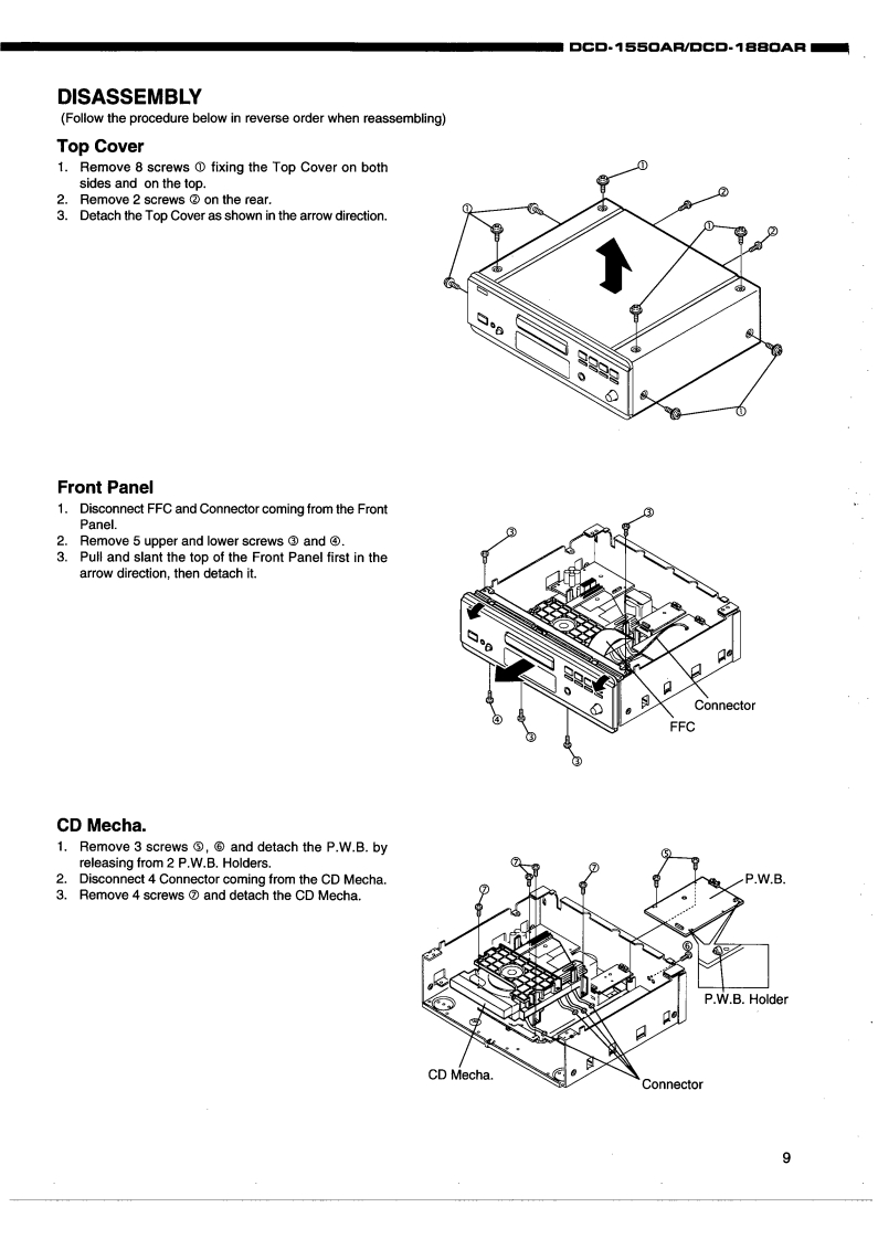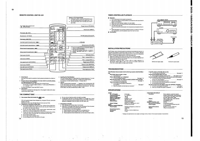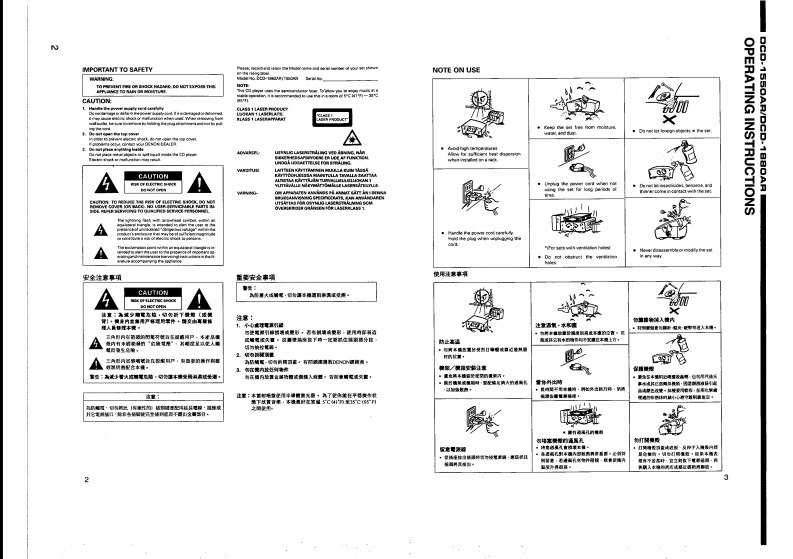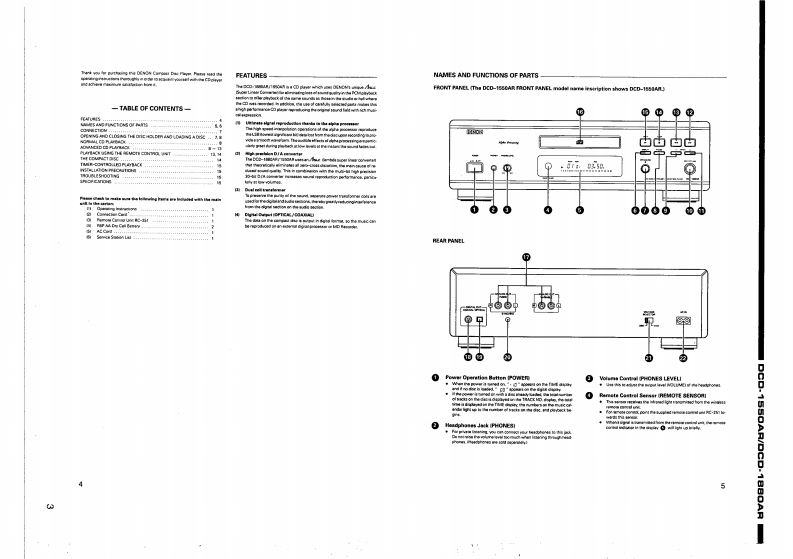 DENONHi-Fi ComponentSERVICE MANUALMODEL DCD-1550AR/DCD-1880ARSTEREO CD PLAYER酱音名问位回回昌哥台与与普当当智一TABLE OF CONTENTSOPERATING INSTRUCTIONS.DISASSEMBLY….2-8a9CONFIRMING THE SERVO...…10-13SEMICONDUCTORS14-21PRINTED WIRING BOARD PATTERNS...22,23NOTE FOR PARTS LIST..24PRINTED WIRING BOARD PARTS LIST24-31PARTS LIST OF MECHANISM UNIT.....EXPLODED VIEW OF MECHANISM UNIT (TCD-79S)32PARTS LIST OF EXPLODED VIEW..................34EXPLODED VIEW............35WIRING DIAGRAM...........36SCHEMATIC DIAGRAM.....3739In order to explain clearly,some illustrations using in this service manual may be slightly different from the actuaset.NIPPON COLUMBIA CO LTD