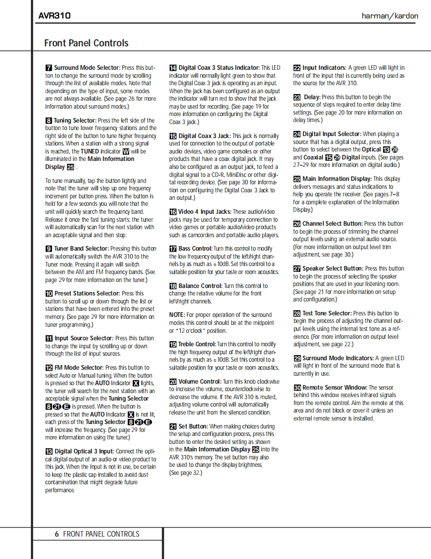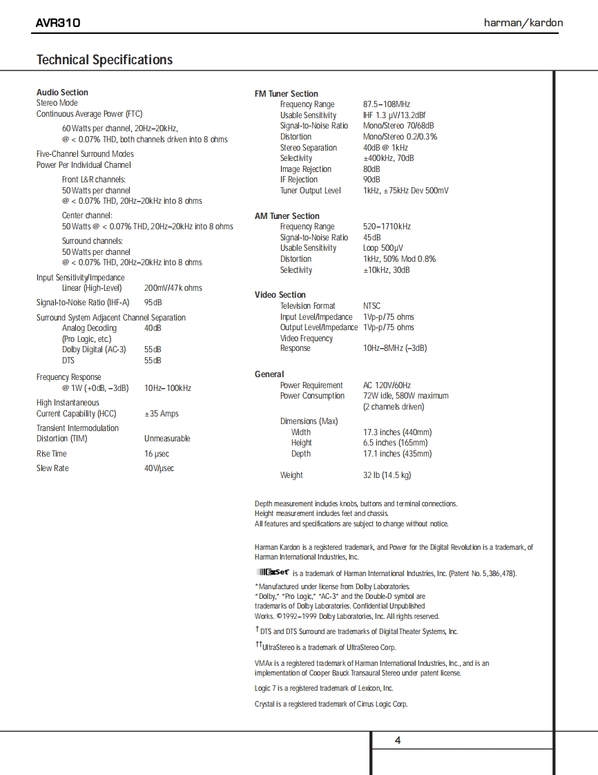 harman/kardonAVR310AM DOLBY DIGITAL RECEIVERSERVICE MANUALharman/kardon。。。。司CONTENTSESD WARNING.............2TECH TIP#HKTT2003-01.....23LEAKAGE TESTING.....................3TECH TIP#HKTT2004-03.......24BASIC SPECIFICATIONS......4IDLE CURRENT/TUNER ALIGNMENT....28FRONT PANEL CONTROLS...REAR PANEL CONNECTIONS..5UNIT EXPLODED VIEW.....................9.9EXPLODED VIEW PARTS LIST...............30REMOTE CONTROL FUNCTIONS...11BLOCK DIAGRAMS........31TROUBLESHOOTING GUIDE..14PCB DRAWINGS............33PROCESSOR RESET..........14ELECTRICAL PARTS LIST.....45SERVICE BULLETIN HK2001-01.............15SEMICONDUCTOR PINOUTS..66SERVICE BULLETIN HK2001-03..............17SCHEMATICS....115SERVICE BULLETIN HK2003-02..............18WIRING DIAGRAM................132SERVICE BULLETIN HK2003-07..19PACKAGE..135TECH TIP#HKTT2002-01.......21harman/kardon,Inc.250 Crossways Park Dr.Woodbury,New York 11797Rev4-6/2005