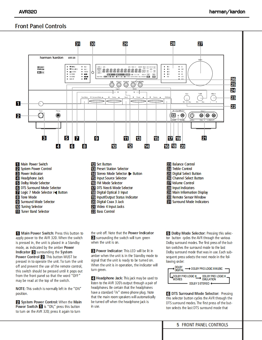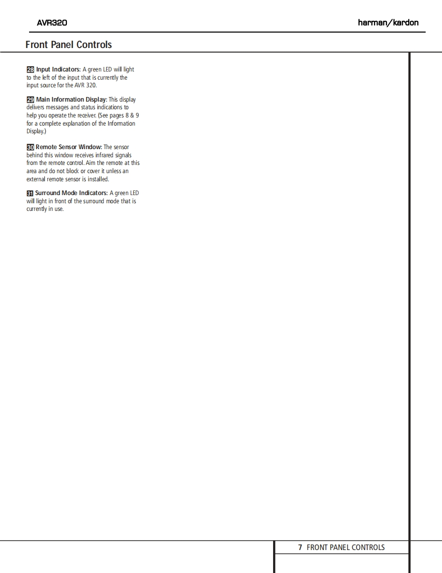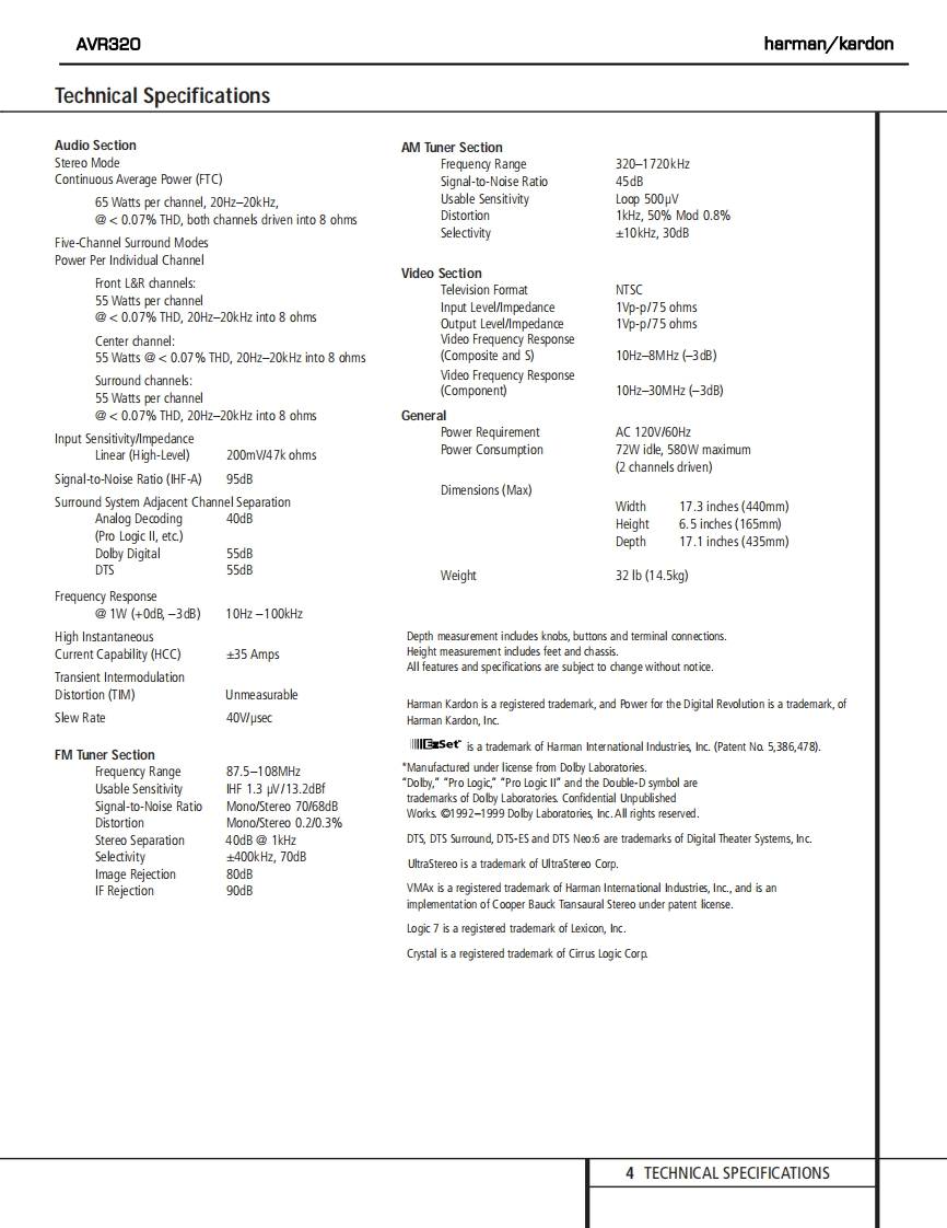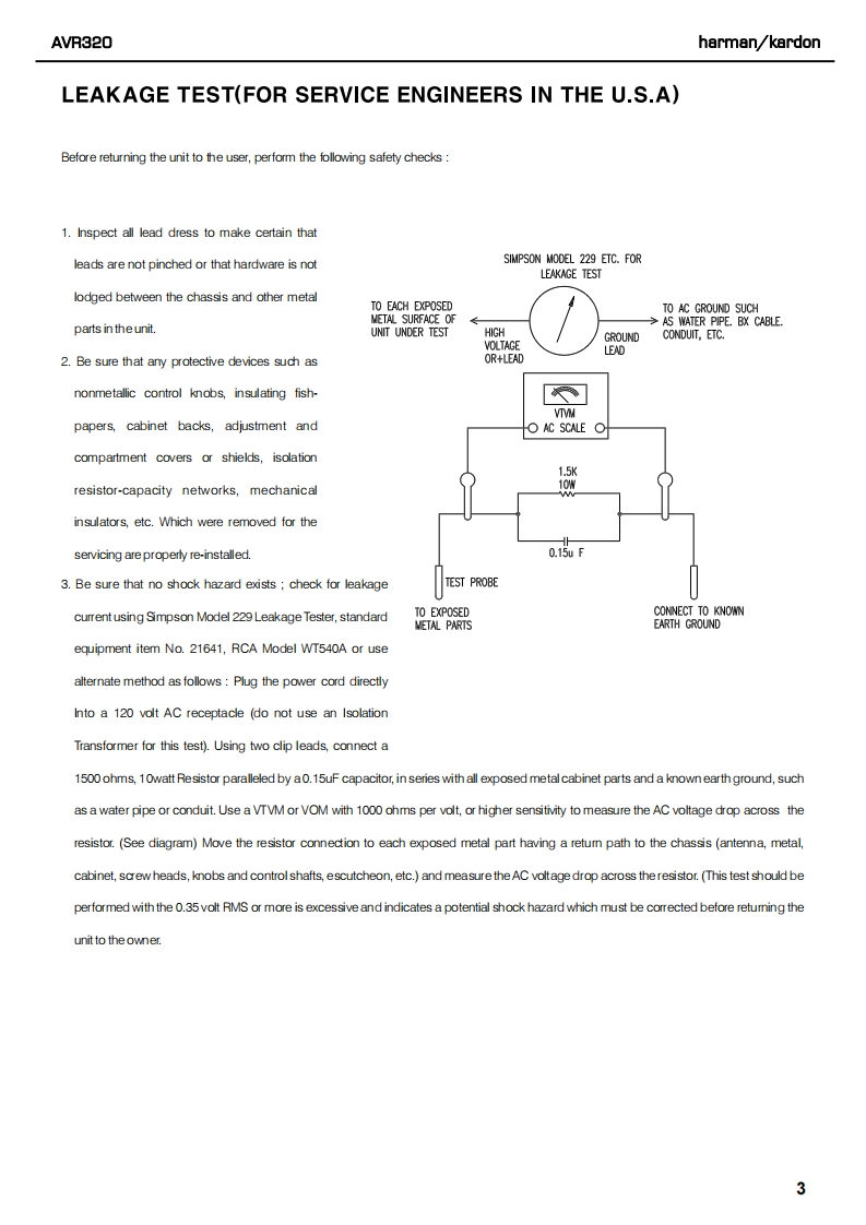 harman/kardonAVR320AV DOLBY DIGITAL RECEIVERSERVICE MANUALhaman/kardon AM32划用品周HET23通7xis as·o0ooO=4-CONTENTSESD WARNING..........2BULLETIN H/K2002-07..............20LEAKAGE TESTING.....3BULLETIN H/K2003-07............21BASIC SPECIFICATIONS.......4TECH TIP HKTT2003-01...............3FRONT PANEL CONTROLS..5TECH TIP HKTT2004-03...........24REAR PANEL CONNECTIONS......10IDLE CURRENT ADJUSTMENT..............8REMOTE CONTROL FUNCTIONS..........12BLOCK DIAGRAM.....31TROUBLESHOOTING GUIDE.................15ELECTRICAL PARTS LIST..................32PROCESSOR RESET......5SEMICONDUCTOR PINOUTS..............77UNIT EXPLODED VIEW........................16SCHEMATICS..............136EXPLODED VIEW PARTS LIST.............17WIRING DIAGRAM........................157BULLETIN H/K2002-03........19PACKAGE.158harman/kardon,Inc.250 Crossways Park Dr.Woodbury,New York 11797Rev5-6/2005