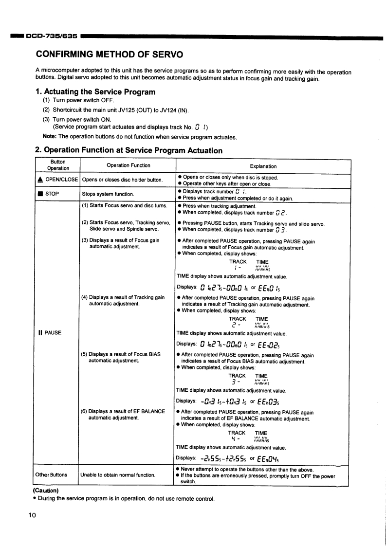 V20989DENONHi-Fi ComponentSERVICE MANUALMODELDC▣-735MODELDCD-635STEREO CD PLAYERDCD-7356DCD-635一CONTENTS-OPERATING INSTRUCTIONSDISASSEMBLY ........…2-74…8,9CONFIRMING METHOD OF SERVO..............................................10-12TEST METHOD FOR HEAT RUN MODE4…13NOTE FOR HANDLING OF THE LASER PICK-UP.13-17SEMICONDUCTORS.18-22NOTE FOR PARTS LIST.23PARTS LIST OF PRINTED WIRING BOARD14424,25PRINTED WIRING BOARD26,27EXPLODED VIEW OF CHASSIS AND CABINET1428PARTS LIST OF EXPLODED VIEW...9EXPLODED VIEW OF CD MECHANISM UNIT3PARTS LIST OF CD MECHANISM UNIT .......30EXPLODED VIEW OF OPTICAL PICK-UP UNIT.30PARTS LIST OF OPTICAL PICK-UP UNIT.................3WIRING DIAGRAM .3132-34.Some illustration using in this service manual is slightly different from the actual set.NIPPON COLUMBIA CO,LTD.