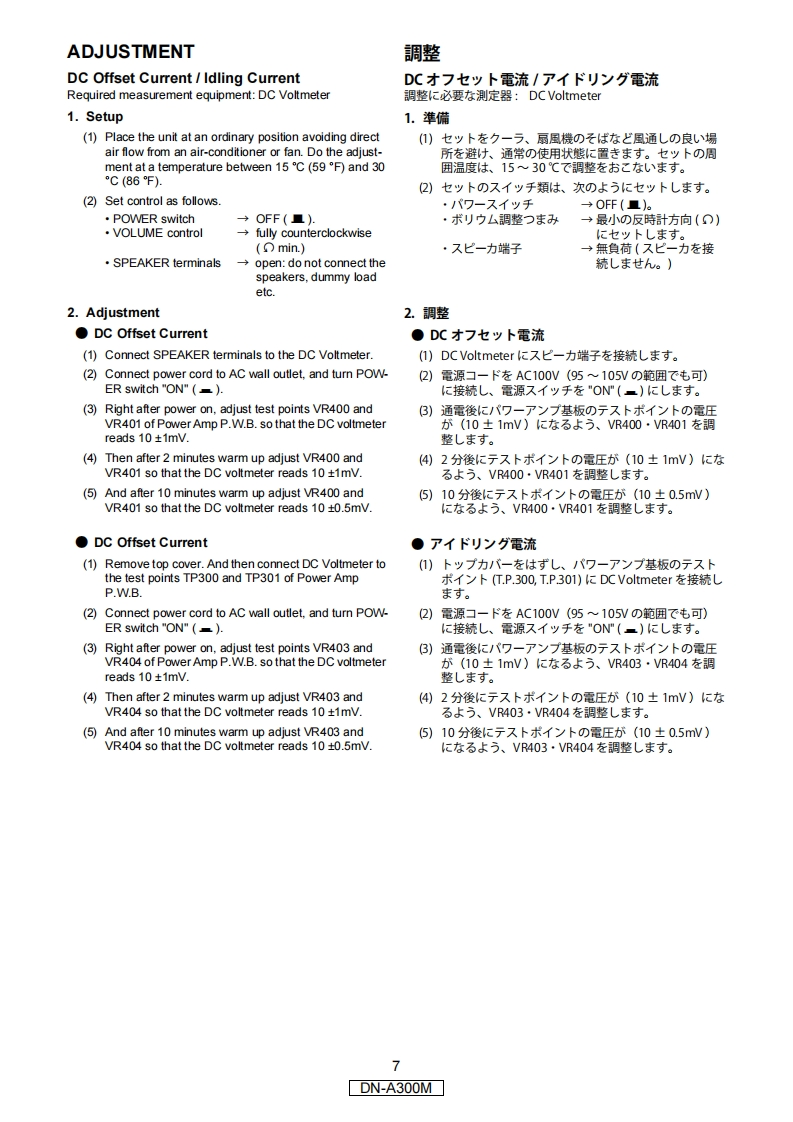 Ver.1DENONPROFESSIONALSERVICE MANUALMODELJPE3E2EKE2AE1CE1KEUTDN-A300MINTEGRATED STEREO AMPLIFIER注意圹一七又在茄乙存前忙、乙)圹一上又又二1了儿在必寸方蔬弘<龙古。本機体、火災、感電、付扩存亿对寸石安全性卷確保寸石上、志夫芯夫存配虚态茄乙本一乙茄)、未左法的体「電用品安全法」屯上老、所定)許可在得(製造志九(訪)夫寸。従)乙圹一七又苍方乙存際体、乙九5)安全性雜持这九石太、乙)圹一上又マ二ュ了忙記載达九(八局注意事項在必式茄守)〈龙过。For purposes of improvement,specifications and·本機)仕横:性能改良)左协、予告在〈变更寸石乙匕design are subject to change without notice.齿)李寸。·補修用性能部品)保有期間:、製造打切後8年C寸。Please use this service manual with referring to the·修理)際肤、必寸取极脱明苦苍参照)上、作業左行)operating instructions without fail.((龙过.Some illustrations using in this service manual are·本文中忙使用L(石亻与又卜休、脱明)都合上現物slightly different from the actual set.匕多少異在局場合外齿)ま寸。D&M Holdings Inc.PROFESSIONAL BUSINESS COMPANYX0394V.01DE/CDM0807