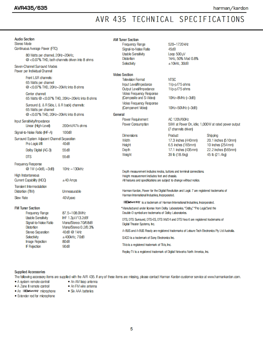 HarmanKardon-AVR435-avr-维修说明书手册含电器原理图