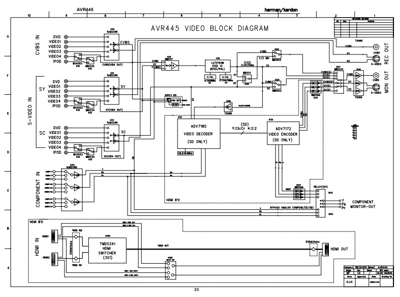 AVR445harman/kardonCS42528-Rev DAVR445 BLOCK DIAGRAMIC21DSPTMs3203A610-225MHzFLFRAAAAA表C440南的花-种171111VDLUNE90999999999口a4R/+FR CHANNELSAME AS FL BLOCK“花73u5脑e修0破/m:237/5光ST/BY ONHOZFL ACM-00ROY虹LAT0满期HAINAC OUTET+2内垃督+2%0n飘(POWER PART)34
