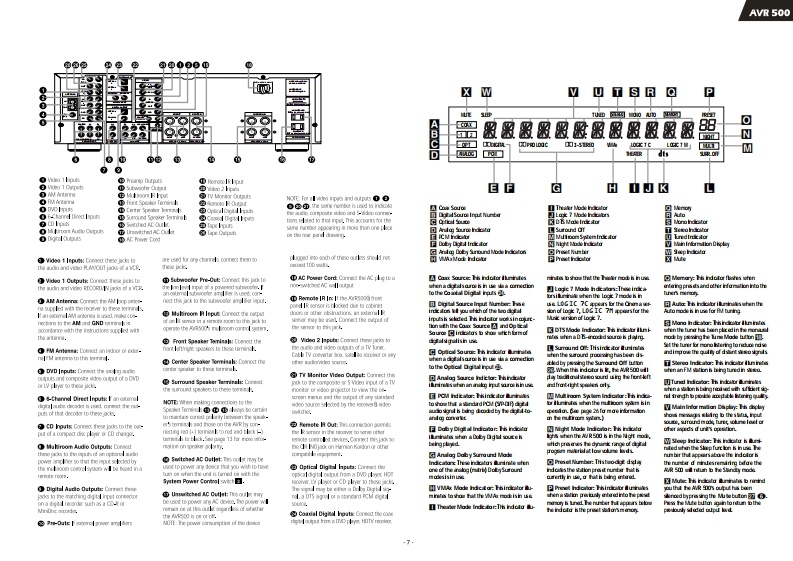 harman/kardonAVR500AM DOLBY DIGITAL RECEIVERSERVICE MANUALharman/kardon WR 500OCONTENTSSPECIFICATIONS....................DISASSEMBLY PROCEDURES...................23ESD WARNINGS.4GENERAL UNIT PARTS LIST ..................24LEAKAGE TEST...............5GENERAL UNIT EXPLODED VIEW................26CONTROLS AND FUNCTIONS.............6PC.BOARDS.....27SERVICE PROCEDURE.....9ELECTRICAL PARTS LIST....................32TEST EQUIPMENT REQUIRED.................9IC BLOCK DIAGRAMS.................................55ALIGNMENT PROCEDURES..9CPU PIN CONFIGURATION..75ALIGNMENT AND TEST POINTS...................11FLT PIN CONFIGURATION...................76CIRCUIT DESCRIPTION..............................13SCHEMATIC DIAGRAMS.............................83BLOCK DIAGRAM.........16PIN CONNECTION DIAGRAM......................92BULLETIN HK2000-02.17WIRING DIAGRAM...............93BULLETIN HK2000-04.19PACKING MATERIAL AND PARTS LIST.........94BULLETIN HK2000-05................................21harman/kardon,Inc.250 Crossways Park Dr.Woodbury,New York 11797Rev1-11/2003