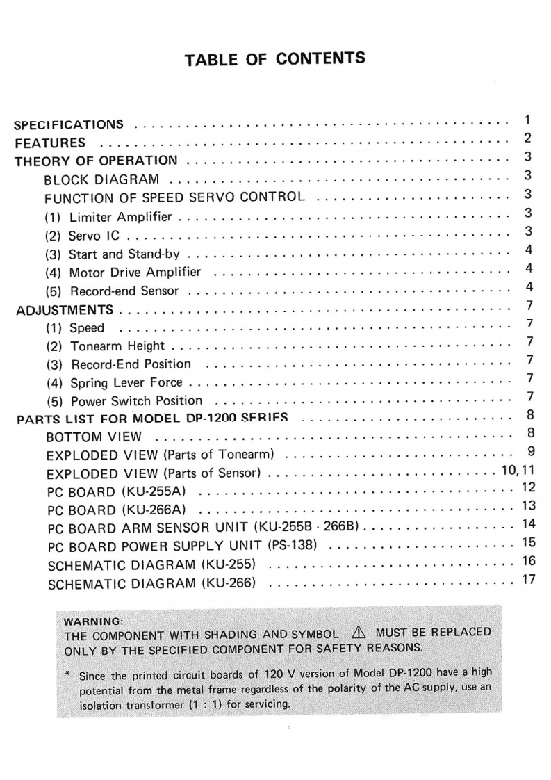 Denon-DP1200-tt-维修说明书手册含电器原理图找手册网7天前发布关注私信8.07MB20页044Denon-DP1200-tt-维修说明书手册含电器原理图此内容为付费资源,请付费后查看¥19¥21黄金会员免费钻石会员免费立即购买您当前未登录!建议登陆后购买,可保存购买订单付费资源 第1页 / 共20页 第2页 / 共20页 第3页 / 共20页 第4页 / 共20页 第5页 / 共20页 第6页 / 共20页 第7页 / 共20页 第8页 / 共20页 第9页 / 共20页 第10页 / 共20页 试读已结束,还剩10页,您可下载完整版后进行离线阅读 THE ENDDenon/Marantz 文本预览 SERVICE MANUALSERVO-CONTROLLEDDIRECT DRIVE TURNTABLEWITH AUTOMATIC ARM LIFTMODEL DP-1200SERIESDENONModel DP-1200NIPPON COLUMBIA CO.,LTD. 查看更多 收起部分 喜欢就支持一下吧收藏