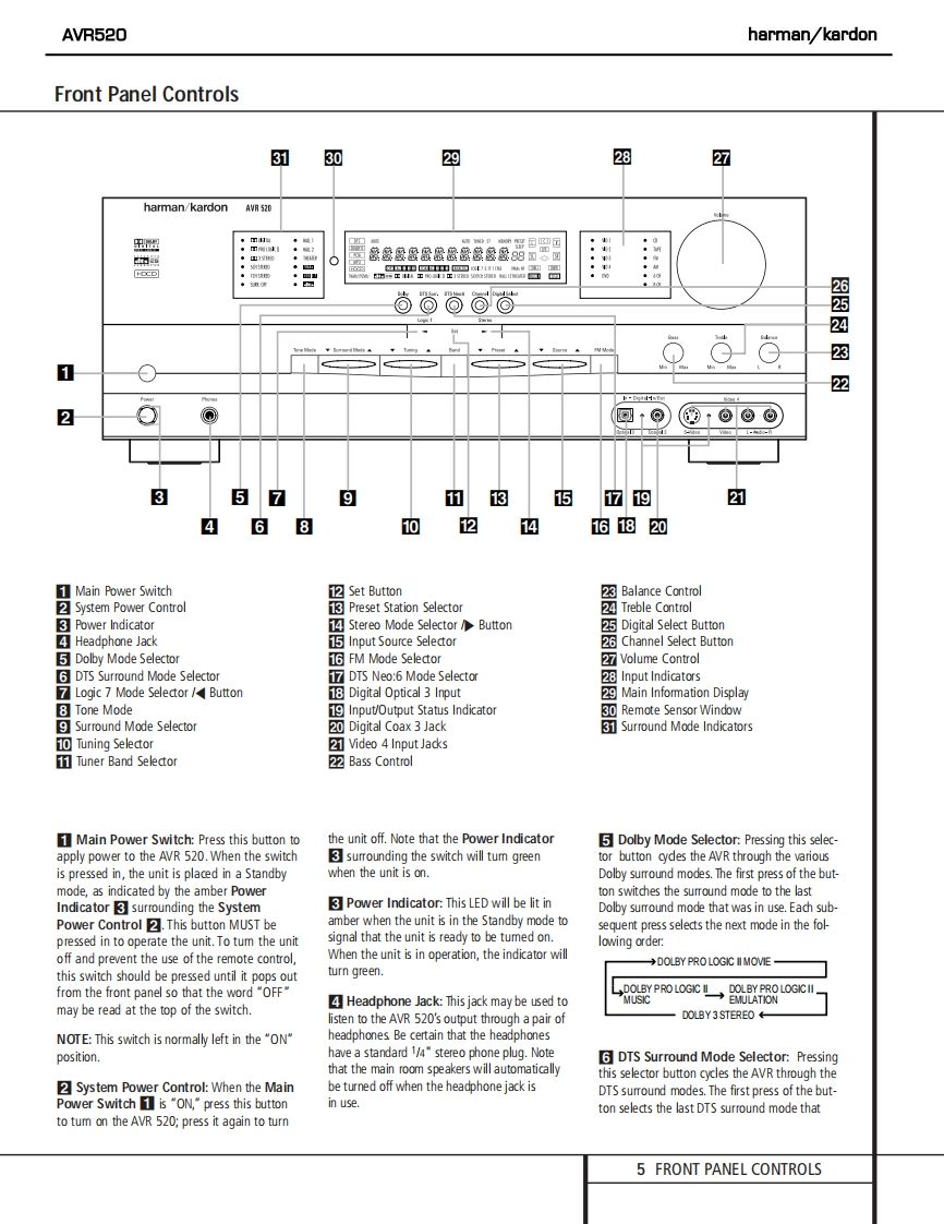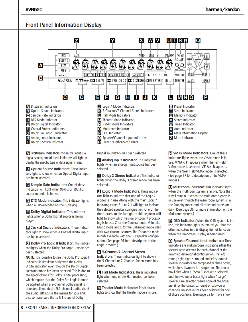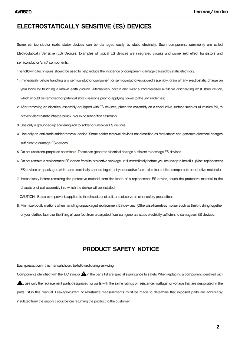 harman/kardonAVR520AM DOLBY DIGITAL RECEIVERSERVICE MANUALhanian/kardon AVR 520ss aDp自·。的。。OCONTENTSESD WARNING.............2EXPLODED VIEW PARTS LIST...............17LEAKAGE TESTING.........3BLOCK DIAGRAM.18BASIC SPECIFICATIONS.....4BULLETIN HK2003-07.....19FRONT PANEL CONTROLS..5TECH TIP HKTT2003-01...............21REAR PANEL CONNECTIONS...............10IDLE CURRENT ADJUSTMENT...............22REMOTE CONTROL FUNCTIONS..12ELECTRICAL PARTS LIST...................25TROUBLESHOOTING GUIDE..................15SCHEMATICS..........73PROCESSOR RESET..................15WIRING DIAGRAM..9.UNIT EXPLODED VIEW........................16PACKAGE..95harman/kardon,Inc.250 Crossways Park Dr.Woodbury,New York 11797Rev4-2/2004