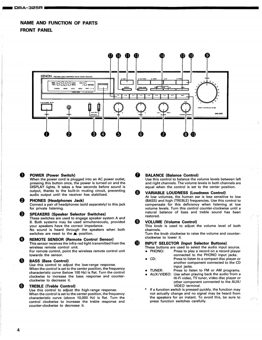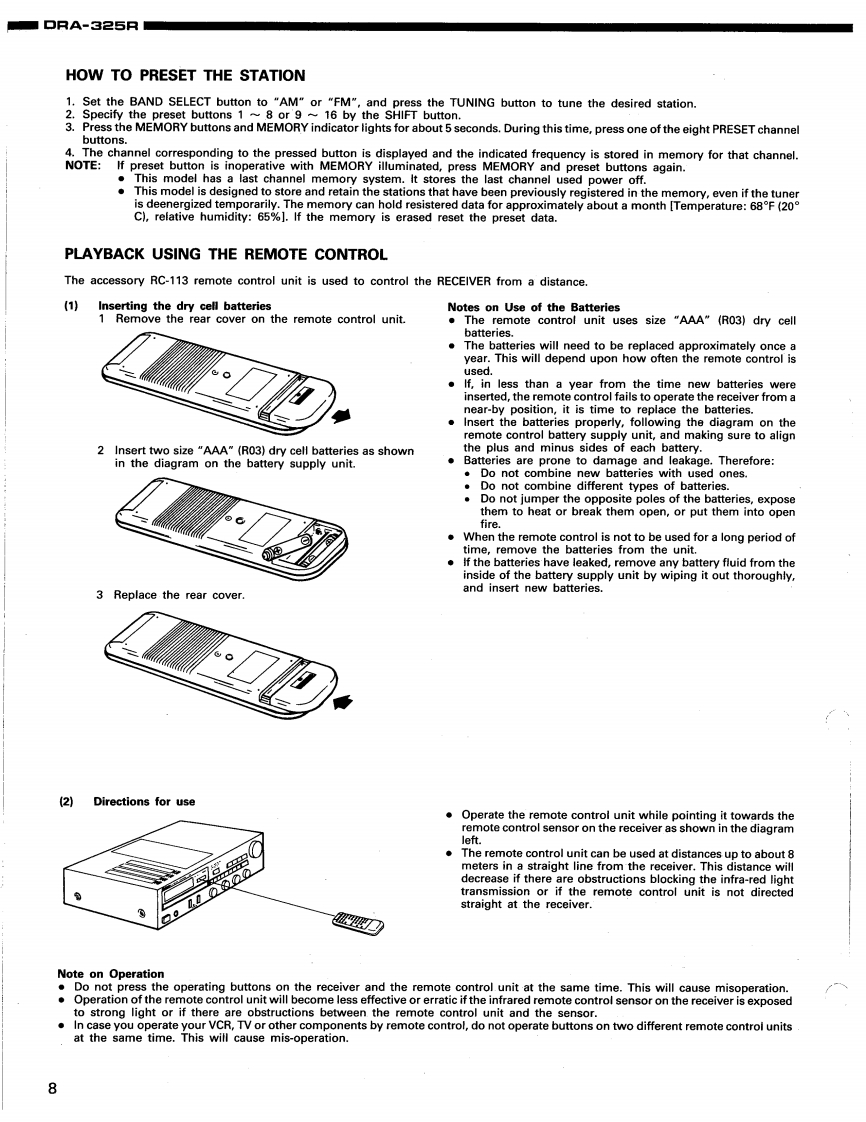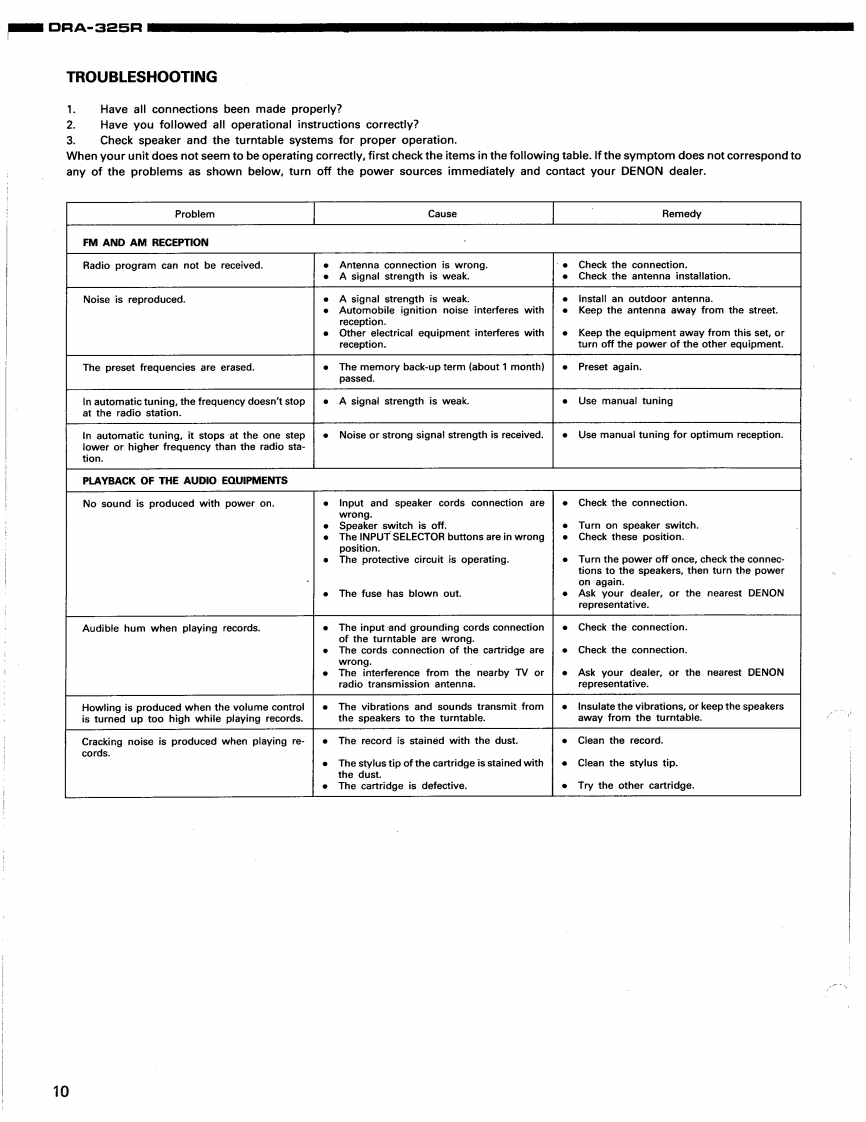94DENONHi-Fi AM-FM Stereo ReceivenFor U.S.A.,(SERVICE MANUALCANADA ASIA ModelsMODEL DRA-325RAM-FM STEREO RECEIVER.0250.TABLE OF CONTENTSOPERATING INSTRUCTIONS..,,,·······2~11REMOVAL OF EACH SECTION .................12.13METHOD OF ADJUSTMENTS.·····.14,15SEMICONDUCTORS....···16,17BLOCK DIAGRAM17PRINTED WIRING BOARD PATTERNS1U-1814 AMP TUNER UNIT ........181U-1815 DISPLAY UNIT ...........19PRINTED WIRING BOARD PARTS LIST1U-1814 AMP TUNET UNIT........·...·...201U-1815 DISPLAY UNIT..,··21WIRING DIAGRAM...·22SCHEMATIC DIAGRAM.·...·.....·...·...·..·23EXPLODED VIEW OF CHASSIS AND CABINET PARTS LIST....24ADDENDUM LIST...................................25NIPPON COLUMBIA CO..LTD.