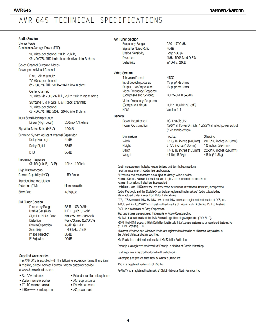 HarmanKardon-AVR645-avr-维修说明书手册含电器原理图