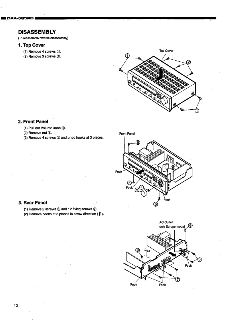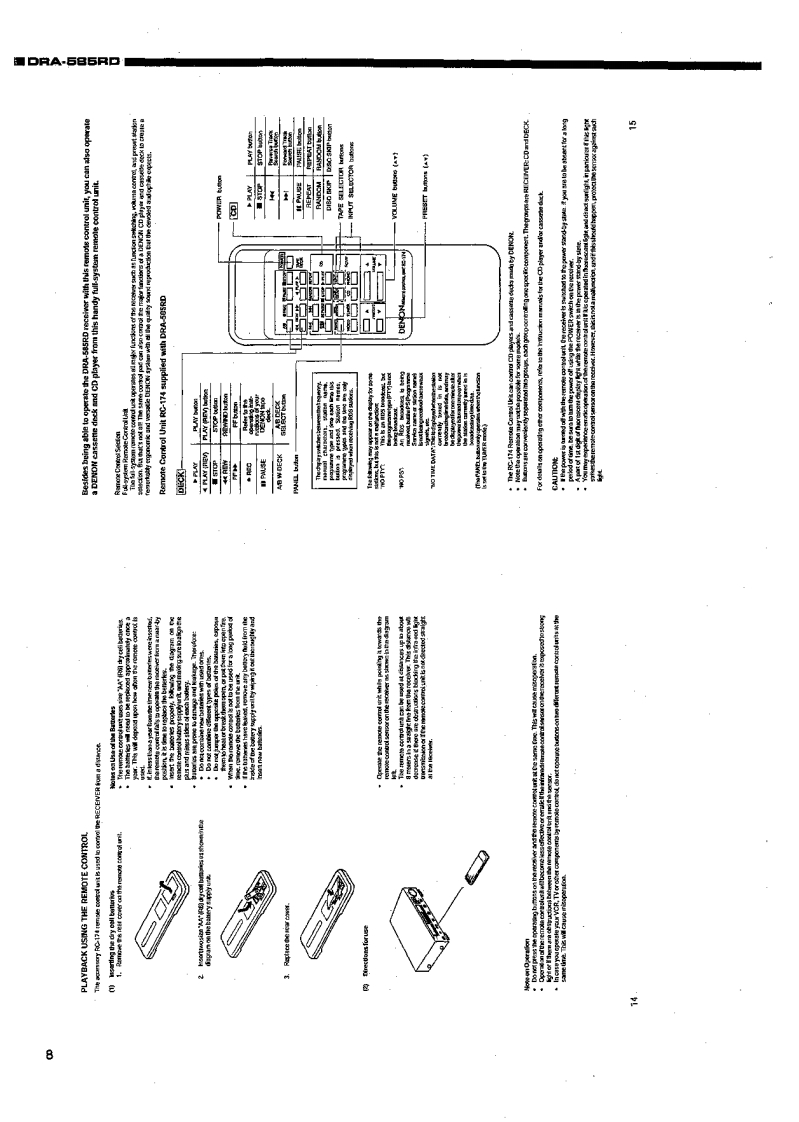 DENONHi-Fi AM-FM Stereo ReceiverFor EuropeSERVICE MANUALAnd U.K.ModelsMO▣EL DRA-5B5RDAM-FM STEREO RECEIVERFH定.s4s巴品共年TABLE OF CONTENTSOPERATING INSTRUCTIONS2-9DISASSE8Y…10METHOD OF ADJUSTMENTSCONNECTION DIAGRAM OF MEASURING INSTRUMENTS ..........................................2BLOCK/L且EL DIAGRAM...........................................................................14PRINTEDWIRINGBOARD PARTS LIST ......................................................15-19PRINTED WAIRING BOARD PATTERNS20,211U-2817 MAIN UNIT ASSY.,..,.,..,+:+++4201U-2915POWERUNITASSY...............................................................20KU-9328 DISPLAY UNIT ASS'Y1U-2818TUNERUNITA8SY................................................................21EXPLODED VIEW OFCHASSIS ANDCABINET......................................................PARTSLISTOFEXPLODEDVIEW ..............................................................23WIRING DIAGRAM .................24SCHEMATIC DIAGRAM...................................25SEMICONDUCTORS26,27NIPPON COLUMBIA CO.LTD.