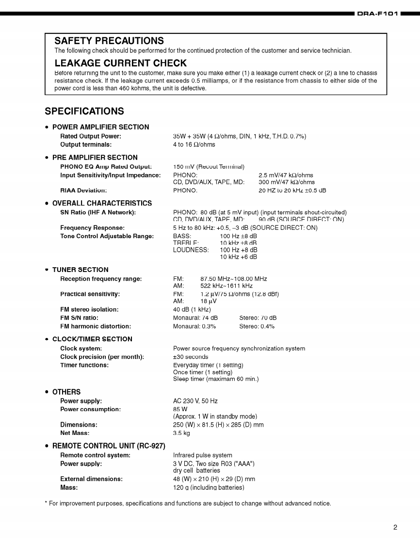 DENONFor Europe U.K.modelHi-Fi AM-FM Stereo ReceiverSERVICE MANUALODEL DRA-FM▣1AM-FM STEREO RECEIVERRDENON。。g。。。8100o卧©Some illustrations using in this service manual are slightly different from the actual set.DENON,Ltd.16-11,YUSHIMA 3-CHOME,BUNKYOU-KU,TOKYO 113-0034 JAPANTelephone:03(3837)5321X0151N四0207