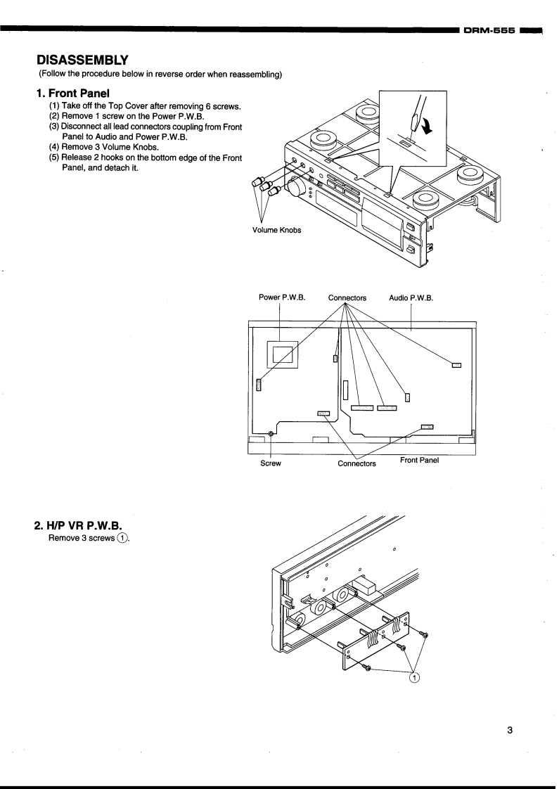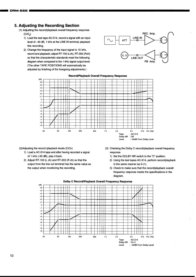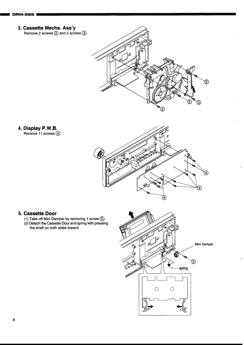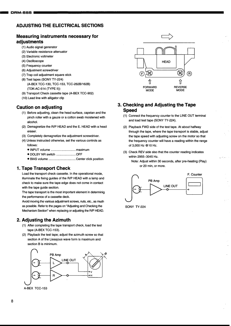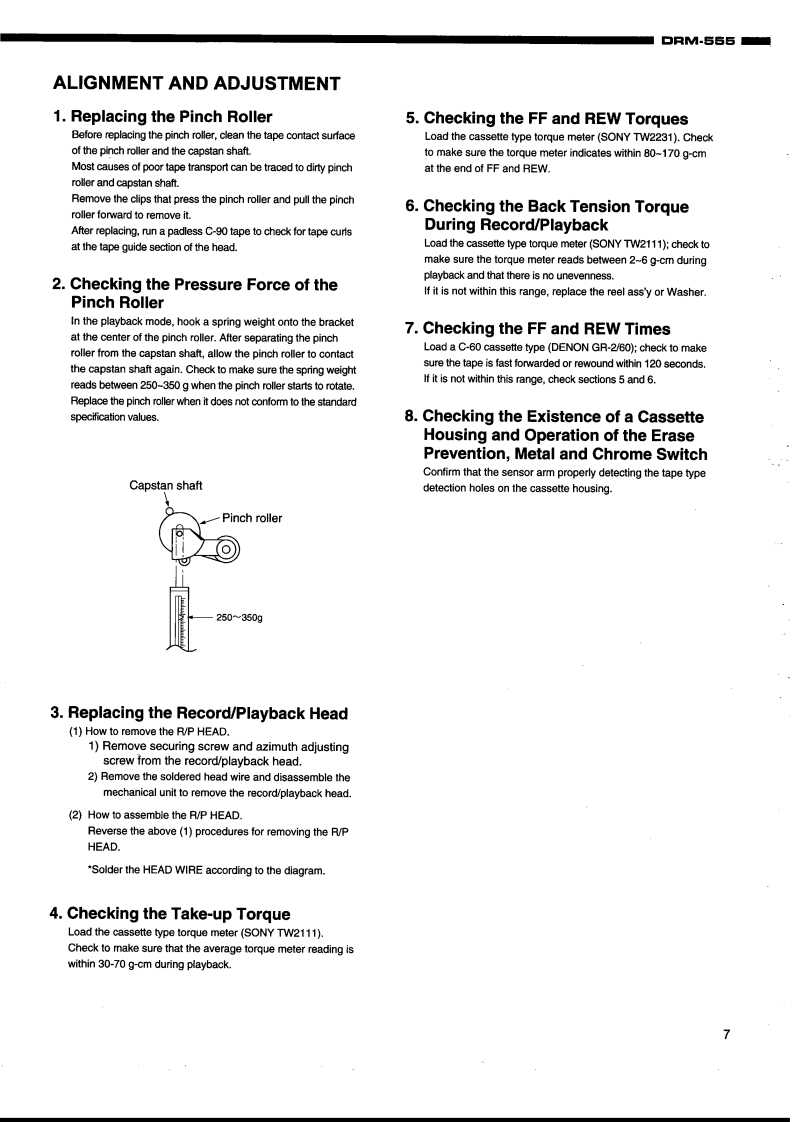 DENONHi-Fi ComponentSERVICE MANUALMODEL DRM-555STEREO CASSETTE TAPE DECK⊙⊙C200网4T和队a色65δ-TABLE OF CONTENTS-SPECIFICATIONS.2DISASSEMBLY .....3-5BUNDLE DIAGRAM46ALIGNMENT AND ADJUSTMENTBLOCK DIAGRAM ...710LEVEL DIAGRAM.11SEMICONDUCTORS.......12-15PRINTED WIRING BOARD.........。16-181U-3174 AUDIO P.W.B.UNIT ASS"Y.....161U-3175 DISPLAY P.W.B.UNIT ASS'Y ................171U-3176 POWER P.W.B.UNIT ASS'Y18NOTE FOR PARTS LIST..19PARTS LIST OF P.W.B.UNIT.20-23PARTS LIST OF EXPLODED VIEW......EXPLODED VIEW.....24.25EXPLODED VIEW OF CASSETTE MECHANISM UNIT.26PARTS LIST OF CASSETTE MECHANISM UNIT .....27WIRING DIAGRAM......28SCHEMATIC DIAGRAM........e..29Some illustrations using in this service manual are slightly different from the actual set.NIPPON COLUMBIA CO.,LTD.