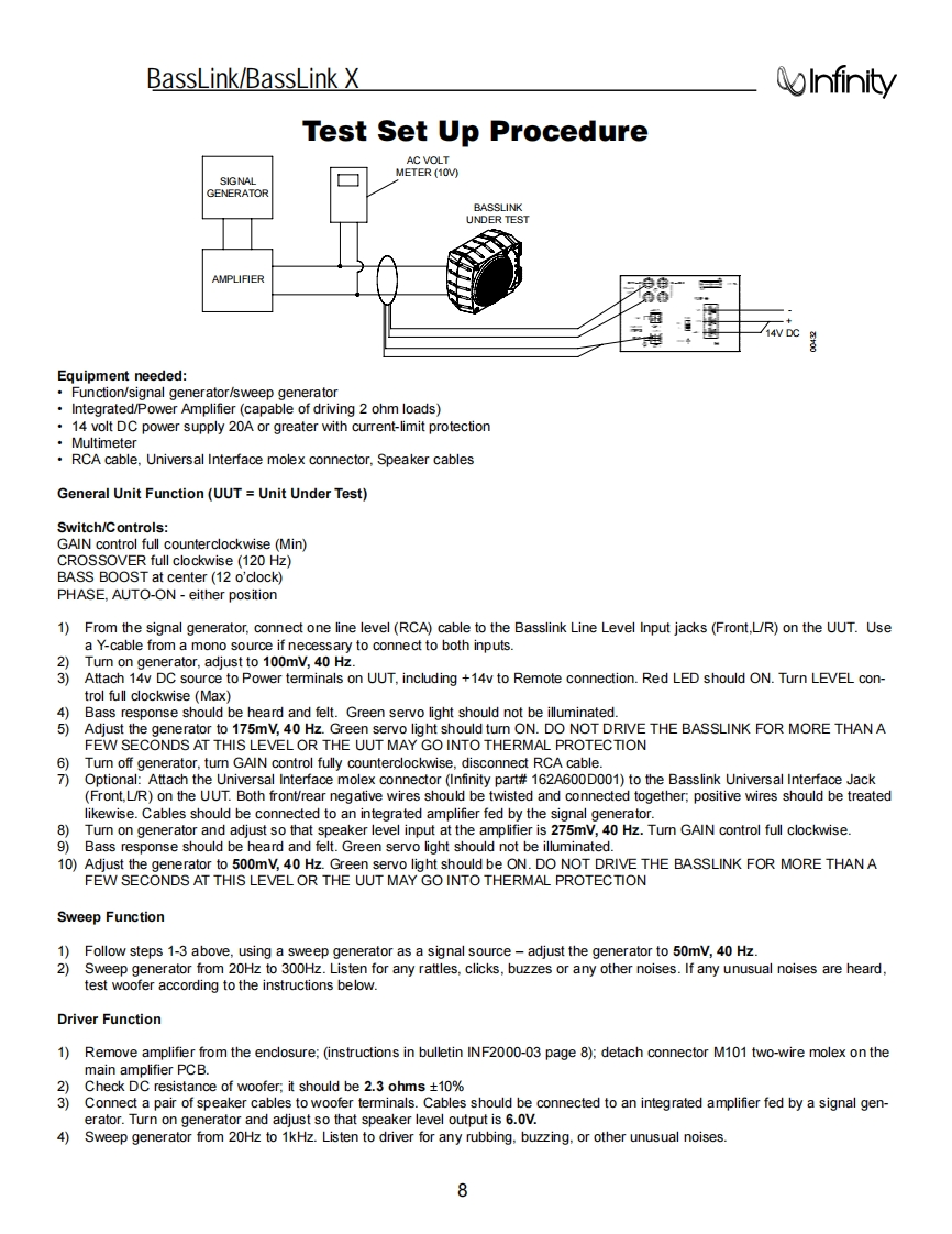 HarmanKardon-BassLinkX-spk-维修说明书手册含电器原理图找手册网29天前发布关注私信4.93MB56页024HarmanKardon-BassLinkX-spk-维修说明书手册含电器原理图此内容为付费资源,请付费后查看¥19¥21黄金会员免费钻石会员免费登录购买付费资源 第1页 / 共56页 第2页 / 共56页 第3页 / 共56页 第4页 / 共56页 第5页 / 共56页 第6页 / 共56页 第7页 / 共56页 第8页 / 共56页 第9页 / 共56页 第10页 / 共56页 试读已结束,还剩46页,您可下载完整版后进行离线阅读 THE END哈曼卡顿/飞利浦 文本预览 ④0InfinityModels:BassLinkBassLink(Remote Level Control Ready)BassLink XPowered Automotive SubwooferSERVICE MANUALInfinity Systems,Inc.250 Crossways Park Dr.Woodbury,New York 11797Rev27/2003 查看更多 收起部分 喜欢就支持一下吧收藏