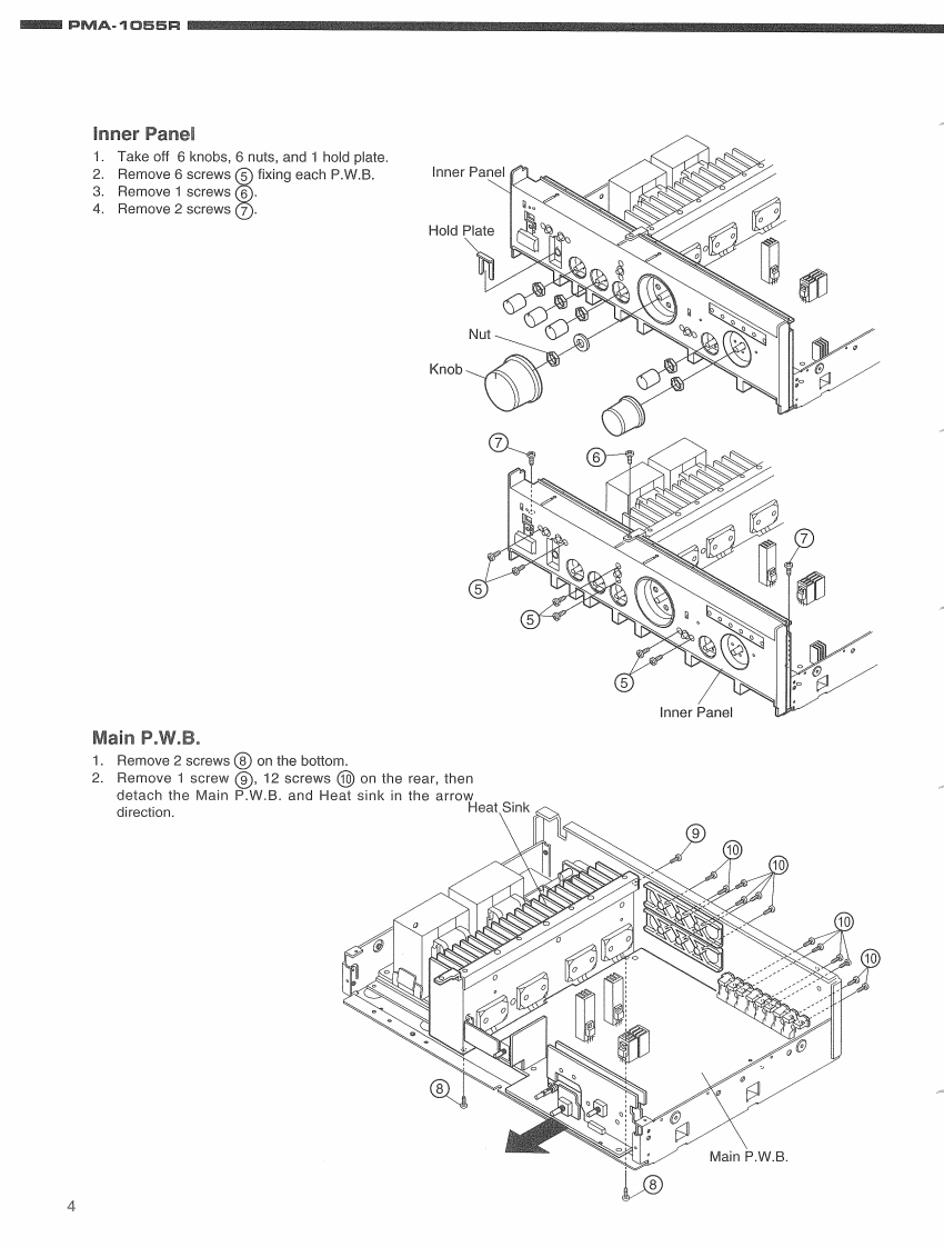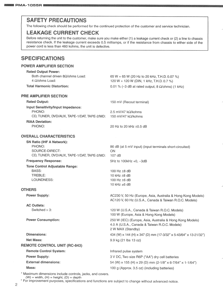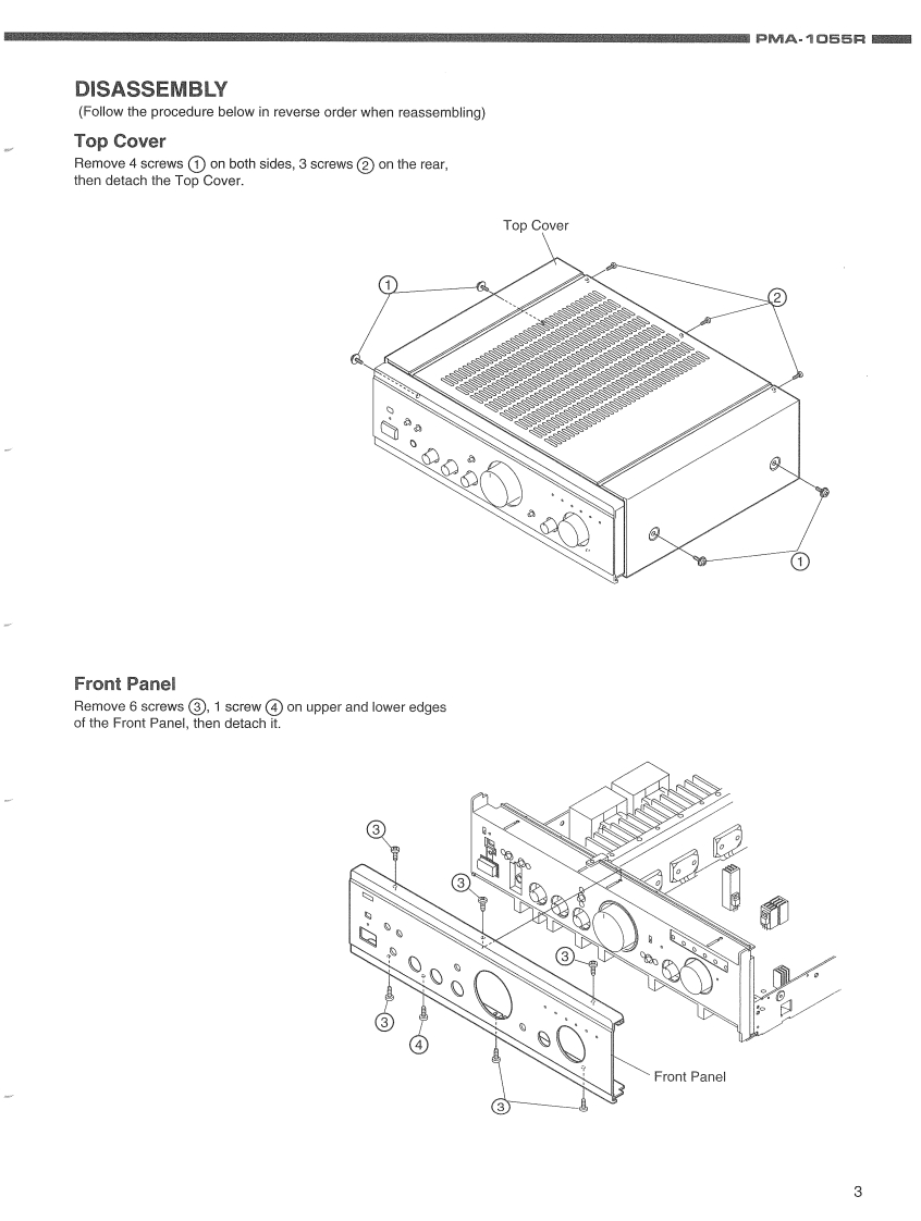 DENONHi-Fi Integrated Stereo AmplifierSERVICE MANUALMODEL PMA-1055RINTEGRATED STEREO AMPLIFIER00▣-TABLE OF CONTENTS-SPECIFICATIONS2DISASSEMBLY ...........3,4BLOCK AND LEVEL DIAGRAM5ADJUSTMENT..6SEMICONDUCTORS..........7,8PRINTED WIRING BOARDNOTE FOR PARTS LIST….91112PARTS LIST OF P.W.B.UNIT ASSY12-15PARTS LIST OF EXPLODED VIEW.....EXPLODED VIEW…1617WIRING DIAGRAM18SCHEMATIC DIAGRAM..19PACKING VIEW.21PARTS LIST OF PACKING ACCESSORIES...............21Some illustrations using in this service manual are slightly different from the actual set.NIPPON COLUMBIA CO,LTD.