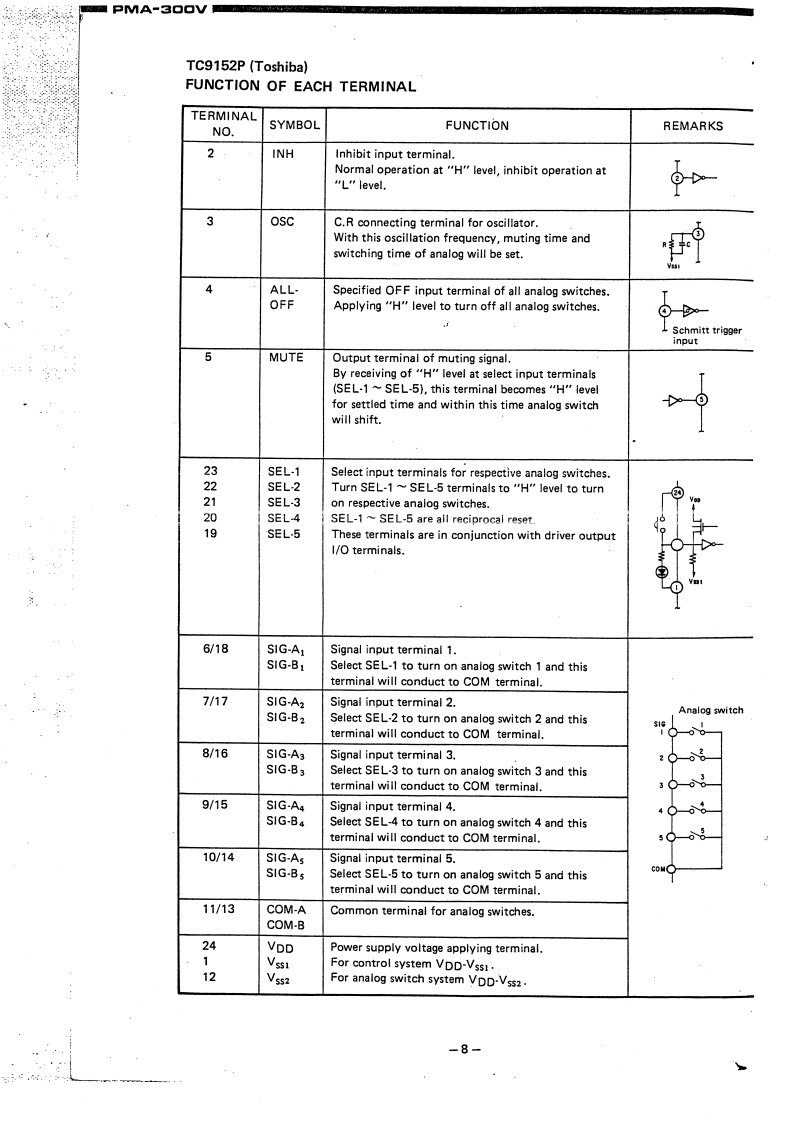 DENONHi-Fi Integrated AmplifierSERVICE MANUALMODEL PMA-3OOVSOLID-STATEINTEGRATED AMPLIFIERTABLE OF CONTENTSSPECIFICATIONS2NAME AND FUNCTION OF PARTS.....................................................3CONNECTIONS...METHOD OF ADJUSTMENTS .........................................................6REMOVAL EACH SECTION ..........................................................6BL0 CK DIAGRAM…SEMICONDUCTORS,·7PRINTED WIRING BOARD PATTERNS AND PARTS LISTETC9067 POWER AMP UNIT .......................................................9NIRING DIAGRAM…SCHEMATIC DIAGRAM............6EXPLODED VIEW OF CHASSIS AND CABINET PARTS LIST.............................14NIPPON COLUMBIA CO.,LTD