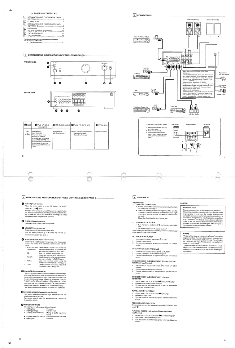 DENONHi-Fi Integrated Stereo AmplifierSERVICE MANUALMODEL PMA-35OSEINTEGRATED STEREO AMPLIFIERDENON胃-TABLE OF CONTENTS-OPERATING INSTRUCTIONS.........27REMOVAL OF EACH SECTION.8,9REMOVAL FOR SERVICING....................10METHOD OF ADJUSTMENTS......................11BLOCK AND LEVEL DIAGRAM........12SEMICONDUCTORS....................13-15PRINTED WIRING BOARD................16,17NOTE FOR PARTS LIST..............444418PARTS LIST OF P.W.BOARD........…18,19PARTS LIST OF EXPLODED VIEW..............20EXPLODED VIEW OF CHASSIS AND CABINET,,,,,.21SCHEMAT1C DIAGRAM.....23Some illustration using in this service manual is slightly different from the actual set.NIPPON COLUMBIA CO.,LTD