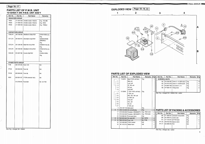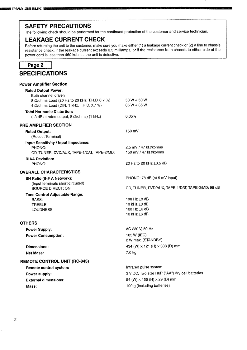 DENONHi-Fi Integrated Stereo AmplifierSERVICE MANUALSUPPLEMENT forU.K.ModelMODEL PMA-355UKINTEGRATED STEREO AMPLIFIERThis service manual only includes those pages whose contents are different from those in the model PMA-655R.(The number of those pages are shown on upper left or right of the page.)For servicing,refer to the service manual of PMA-655R already issued at the same time.CONTENTSSAFETYSPECIFICATIONS442PRINTED WIRING BOARD3PARTS LST OF P.W.B.UNIT...........4EXPLODED VIEW AND PARTS LIST.........1.5PARTS LIST OF PACKING ACCESSORIES ..............5WIRING DIAGRAM.......4,6SCHEMATIC DIAGRAMS..............Some illustrations using in this service manual are slightly different from the actual set.NIPPON COLUMBIA CO.LTD.