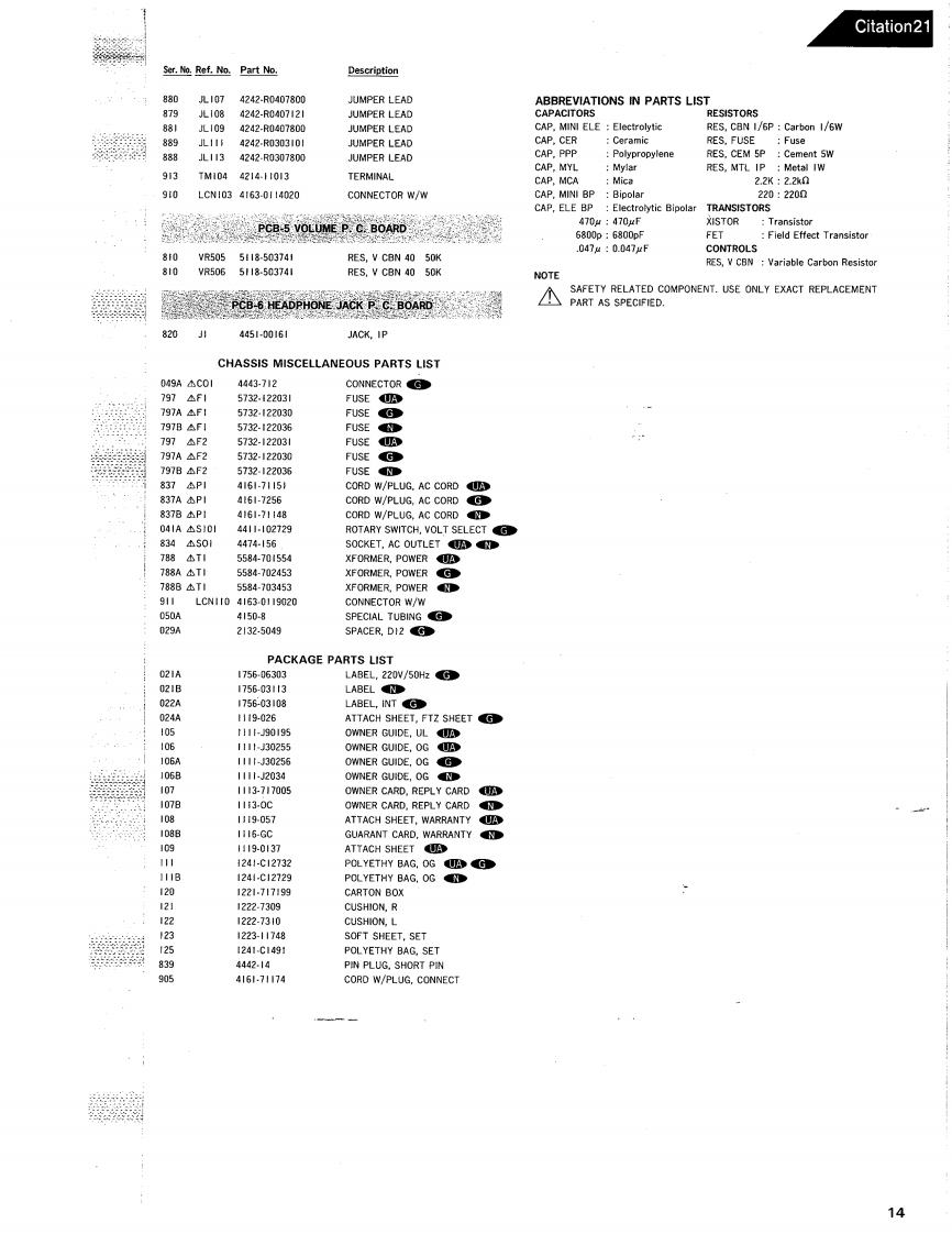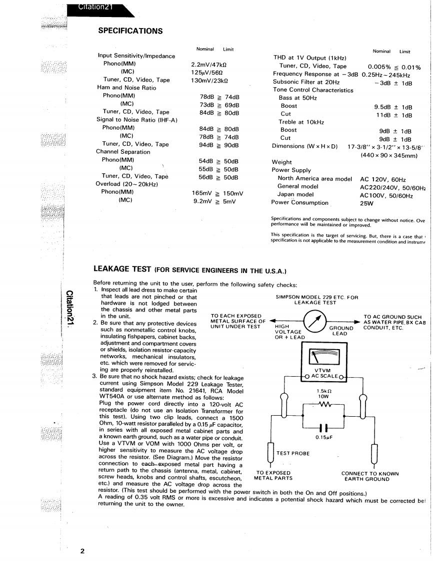The Harman KardonModel Citation21Manual 112ASTEREO PREAMPLIFIERTechnical ManualCitationThe following marks found in the parts list of this manual identifythe models as follows.North America area modelGeneral modelJapan modelharman/kardon240CrosswaysParkWest.Woodbury.N.Y.117971112.3152112A6P.0B8706100 Printed in J.8p3n