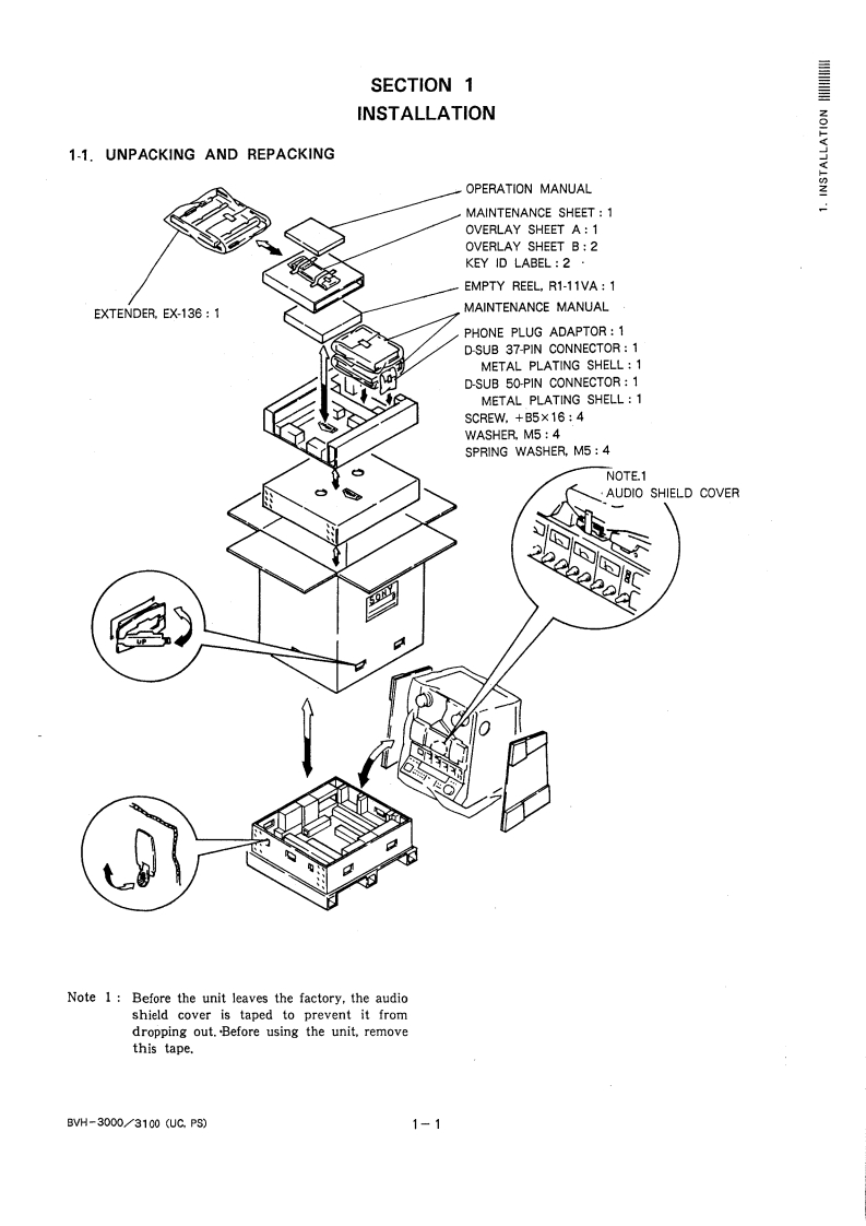 SONYVIDEOCORDERBVH-3000PSBVH-3100PSSONYSONYsON¥SONYBVH-3000PSBVH-3100PSBVH-3000PS/3100PS with this optional part installedside panel kit.MAINTENANCE MANUALVolume1 1st Edition (Revised 5)BVH3000PS Serial No.10001 and HigherBVH-3100PS Serial No.10001 and Higher