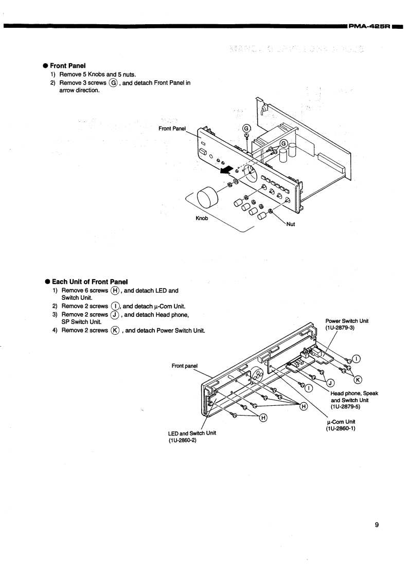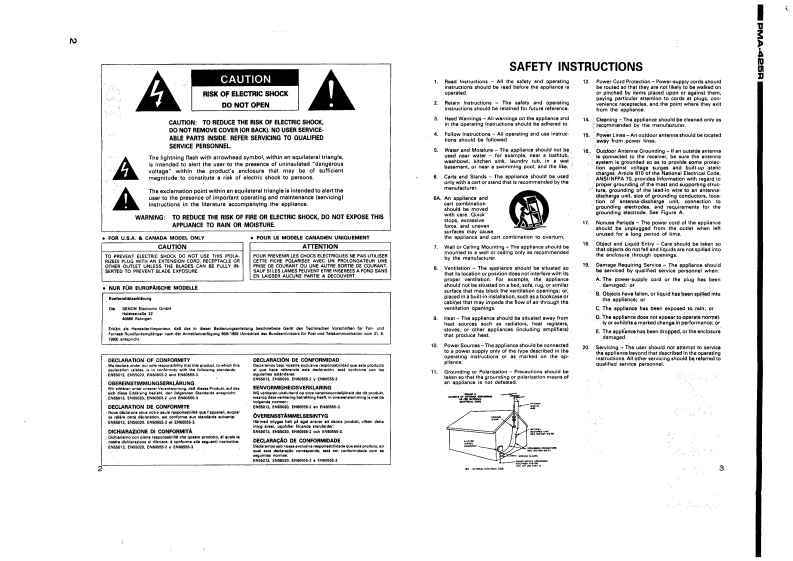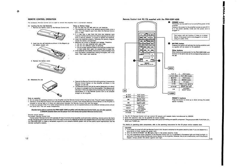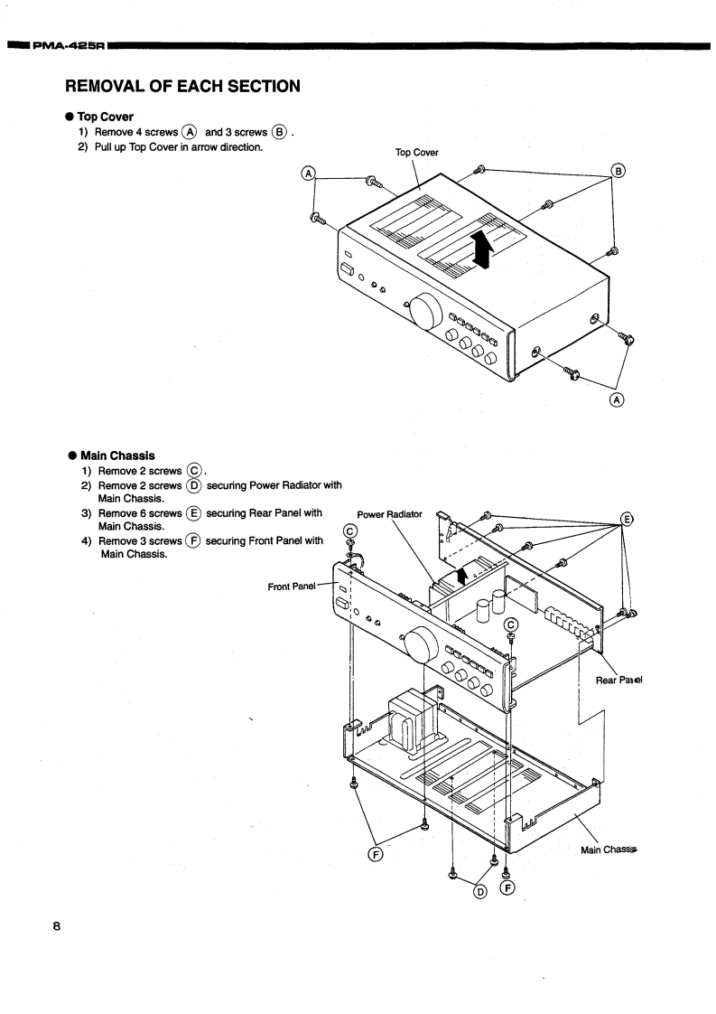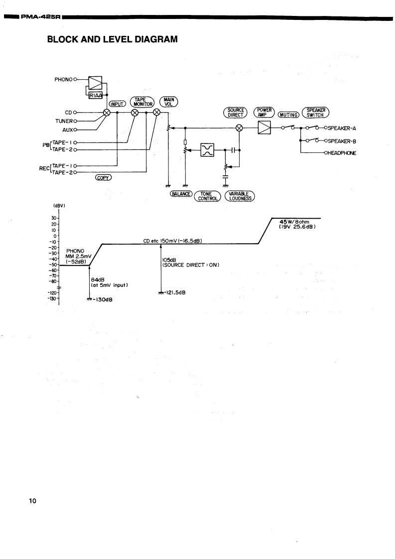 DENONHi-Fi Integrated Stereo AmplifierSERVICE MANUALMODEL PMA-425RINTEGRATED STEREO AMPLIFIER6oooooā668CONTENTSOPERAnNG INSTRUCTIONS.......................................................REMOVALOFEACHSECTION.......................................................218,BLOCK AND LEVEL DIAGRAMMETHOD OF ADJUSTMENTSSEMICONDUCTORS.·12,13PRINTED WIRING BOARD…PARTS LIST OF P.W.B.ASS'Y14…16,EXPLODED VIEW OF CHASSIS AND CABINETPARTS LIST OF EXPLODED VIEWWRINGDIAGRAM......................................................................SCHEMATCDIAGRAM....................................................................2NIPPON COLUMBIA CO.,LTD.