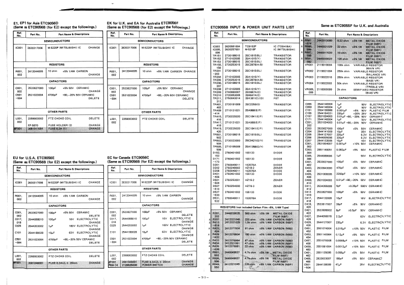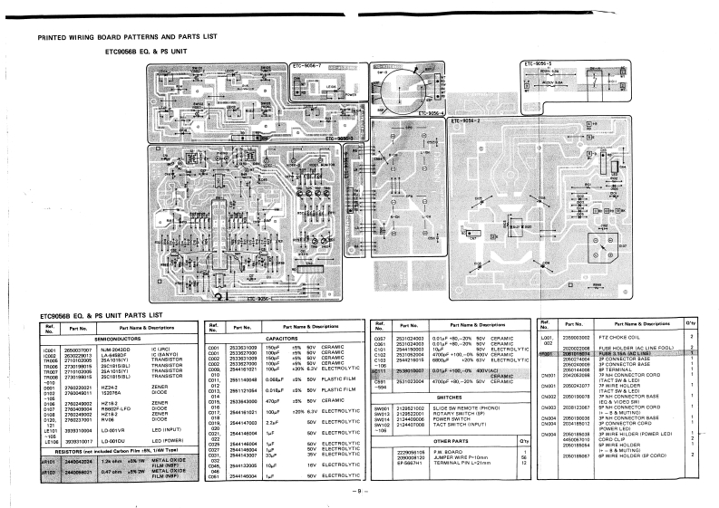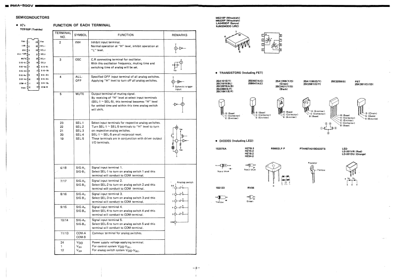 DENONHi-Fi Integrated AmplifierSERVICE MANUALMODEL PMA-5▣▣VSOLID STATEINTEGRATED AMPLIFIERTABLE OF CONTENTSSPECIFICATIONS.…2NAMES AND FUNCTIONS OF PARTS...................................................3REMOVAL OF EACH SECTION........................................................CONNECTIONS5BLOCK DIAGRAM...................................................................METHOD OF ADJUSTMENTS..........................................................7SEMICONDUCTORS.................PRINTED WIRING BOARD PATTERNS AND PARTS LISTETC9056B EQ.&PS UNIT..........................................................9ETC9055B INPUT POWER UNIT ...................................................10WIRING DIAGRAM..................................................................14SCHEMATIC DIAGRAM.....………15EXPLODED VIEW OF CHASSIS AND CABINET PARTS LIST.............................16NIPPON COLUMBIA CO.LTD