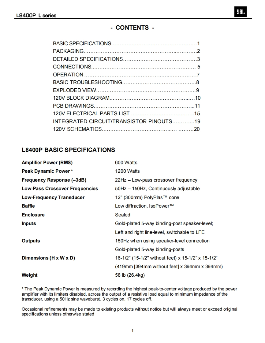 Jbl-L8400P-actsub找手册网3天前发布关注私信2.06MB24页021Jbl-L8400P-actsub此内容为付费资源,请付费后查看¥19¥21黄金会员免费钻石会员免费立即购买您当前未登录!建议登陆后购买,可保存购买订单付费资源 第1页 / 共24页 第2页 / 共24页 第3页 / 共24页 第4页 / 共24页 第5页 / 共24页 第6页 / 共24页 第7页 / 共24页 第8页 / 共24页 第9页 / 共24页 第10页 / 共24页 试读已结束,还剩14页,您可下载完整版后进行离线阅读 THE ENDJbl/Onkyo 文本预览 JBLStudio L SeriesL8400PAmplifier/SubwooferSERVICE MANUAL0JBL Consumer Products250 Crossways Park Dr.Woodbury,New York 11797Rev13/2006 查看更多 收起部分 喜欢就支持一下吧收藏