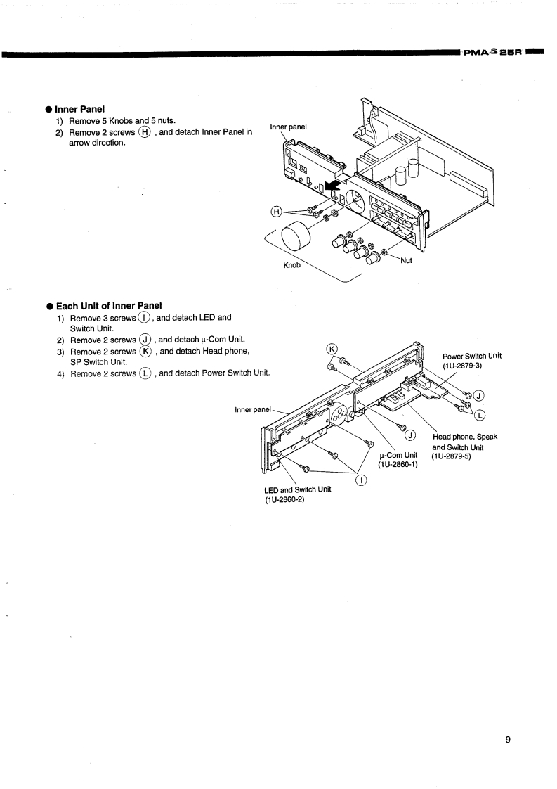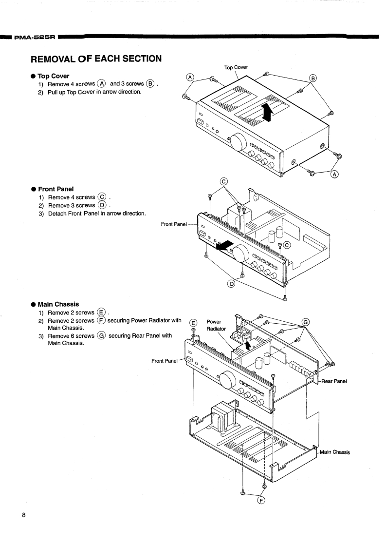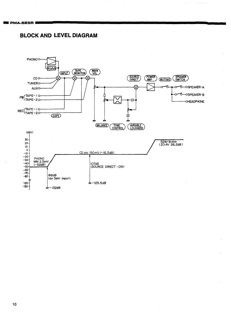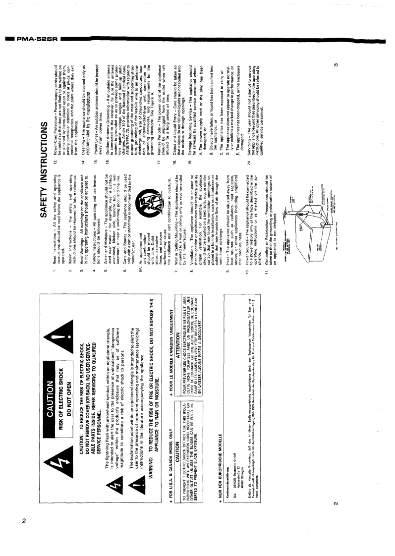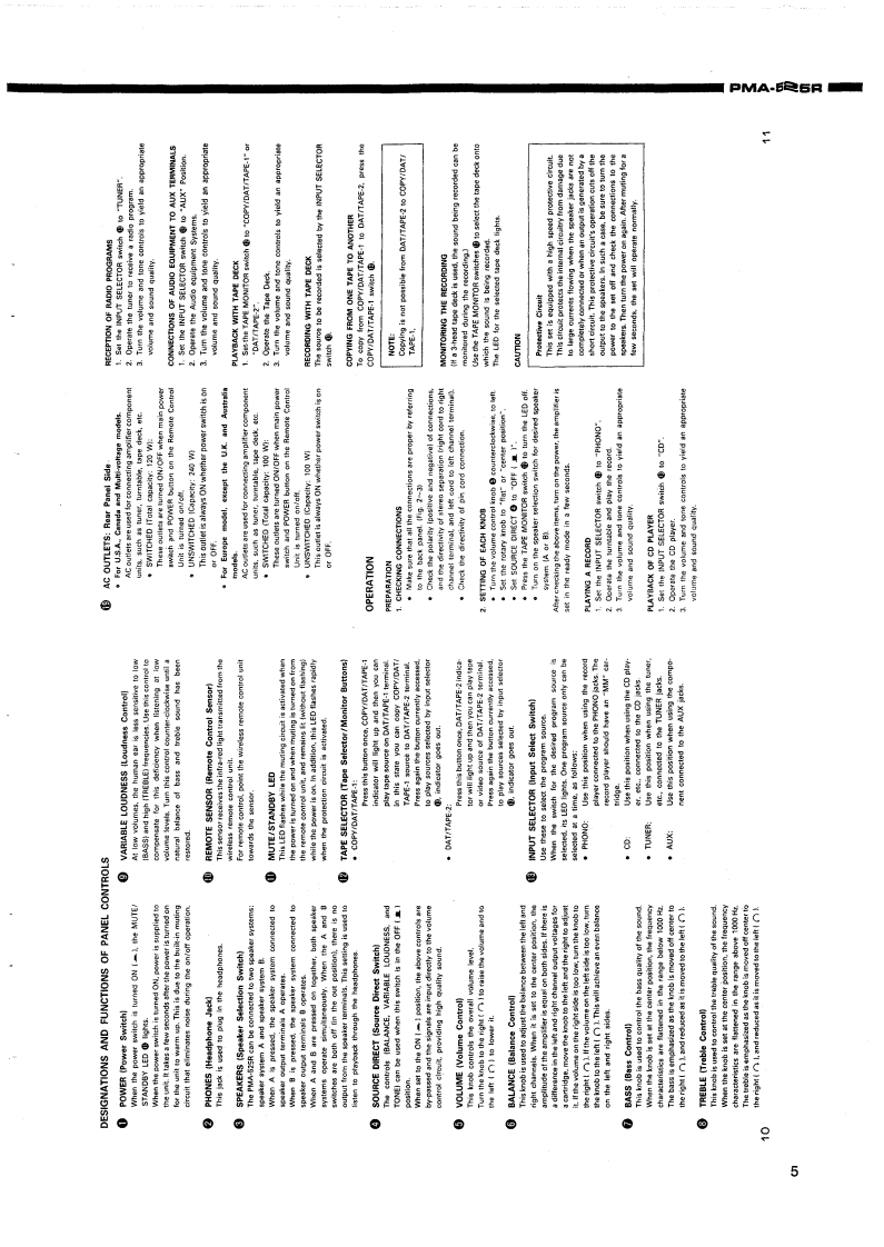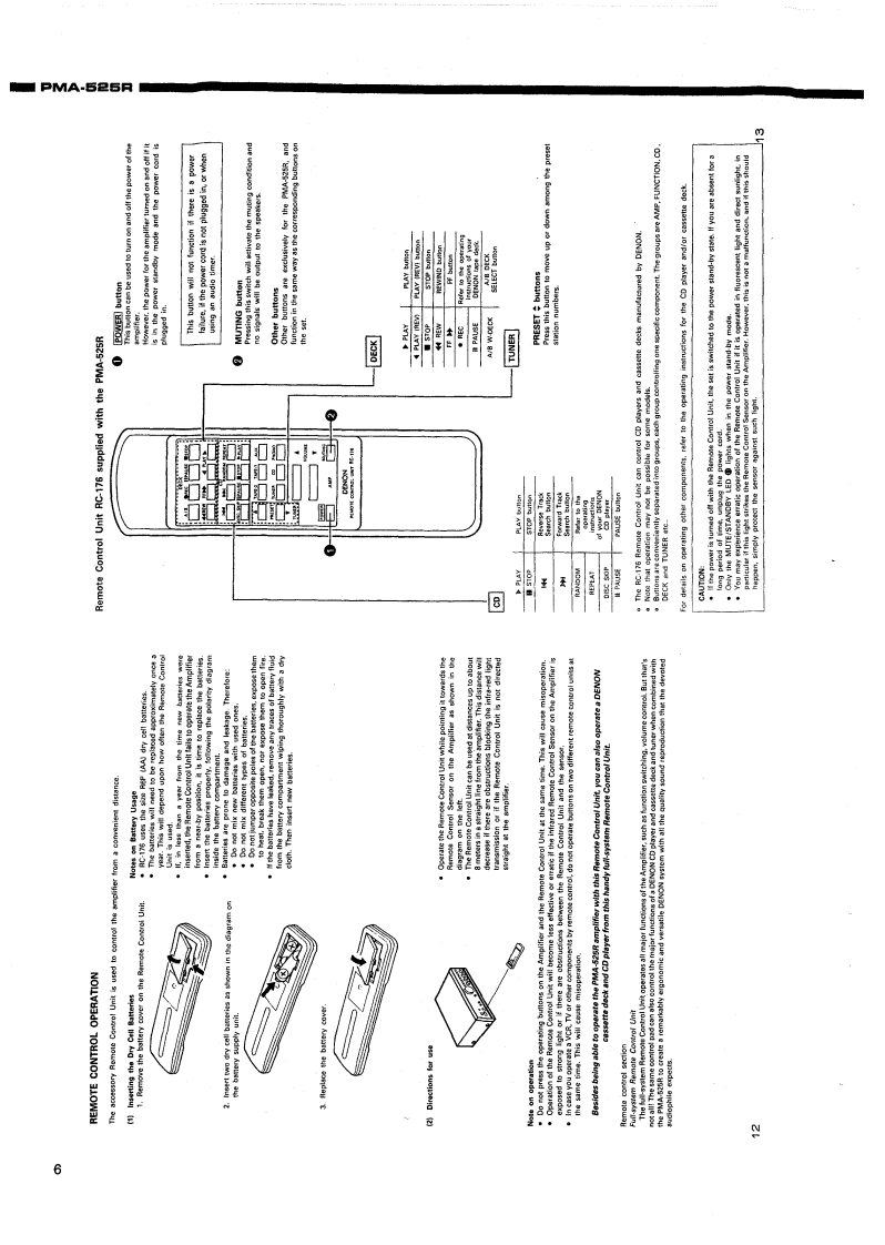 DENOS.附ANUAL PMA525RHi-Fi Integrated Stereo AmplifierSERVICE MANUALMODEL PMA-525RINTEGRATED STEREO AMPLIFIERCONTENTSOPERATING INSTRUCTIONS2-7REMOVAL OF EACH SECTION .................................................................89BLOCK AND LEVEL DIAGRAMMETHODOFADJUSTMENTS....................................................................11SEMICONDUCTORS .......................................................................12,PRINTED WIRING BOARD14,15PARTS LIST OF P.W.B.ASS'Y16,17EXPLODED VIEW OF CHASSIS AND CABINET ....................................................PARTS LIST OF EXPLODED VIEW............WIRING DIAGRAM.…2SCHEMATIC DIAGRAM ...............................................21NIPPON COLUMBIA CO,LTD.