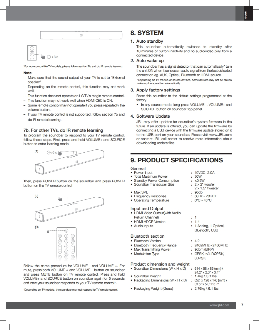 JBL_Bar-Studio_操作说明书手册_English找手册网3天前发布关注私信1.58MB8页035JBL_Bar-Studio_操作说明书手册_English此内容为付费资源,请付费后查看¥19¥21黄金会员免费钻石会员免费立即购买您当前未登录!建议登陆后购买,可保存购买订单付费资源 第1页 / 共8页 第2页 / 共8页 第3页 / 共8页 第4页 / 共8页 第5页 / 共8页 第6页 / 共8页 第7页 / 共8页 第8页 / 共8页 已完成全部阅读,共8页 THE ENDJbl/Onkyo 文本预览 JBLHARMANJBL BAR STUDIODDOLBY AUDIOH▣n8 BluetoothIN DEFIMTION NULTIMEDI INTERFACOWNER'S MANUAL 查看更多 收起部分 喜欢就支持一下吧收藏
