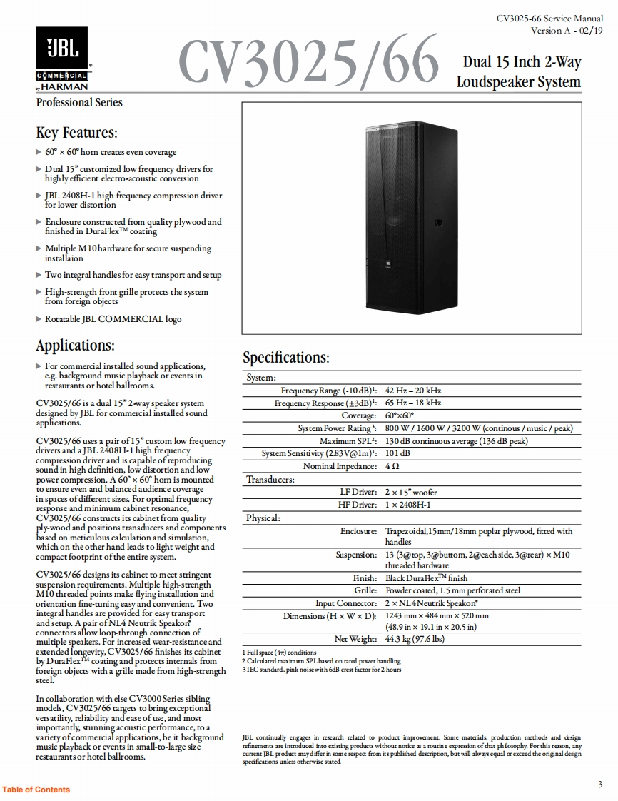 JBL_CV3025-66_ServiceManual_vA维修手册电器原理图找手册网3天前发布关注私信1.74MB7页051JBL_CV3025-66_ServiceManual_vA维修手册电器原理图此内容为付费资源,请付费后查看¥19¥21黄金会员免费钻石会员免费立即购买您当前未登录!建议登陆后购买,可保存购买订单付费资源 第1页 / 共7页 第2页 / 共7页 第3页 / 共7页 第4页 / 共7页 第5页 / 共7页 第6页 / 共7页 第7页 / 共7页 已完成全部阅读,共7页 THE ENDJbl/Onkyo 文本预览 Version A-02/19JBLPROFESSIONALHARMANService manualCV3025-66Dual 15"2-Way Loudspeaker SystemJBLHARMANA SAMSUNG COMPANY1 查看更多 收起部分 喜欢就支持一下吧收藏