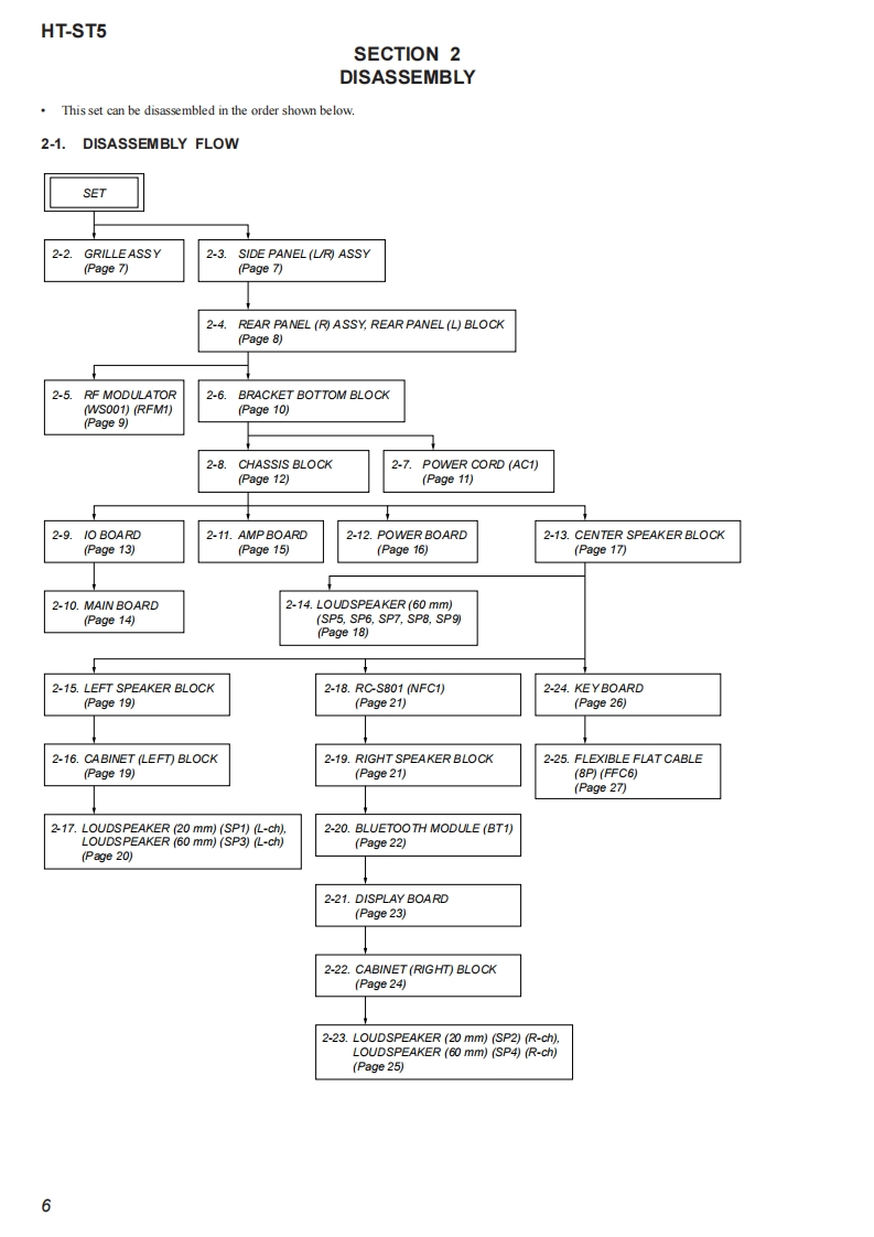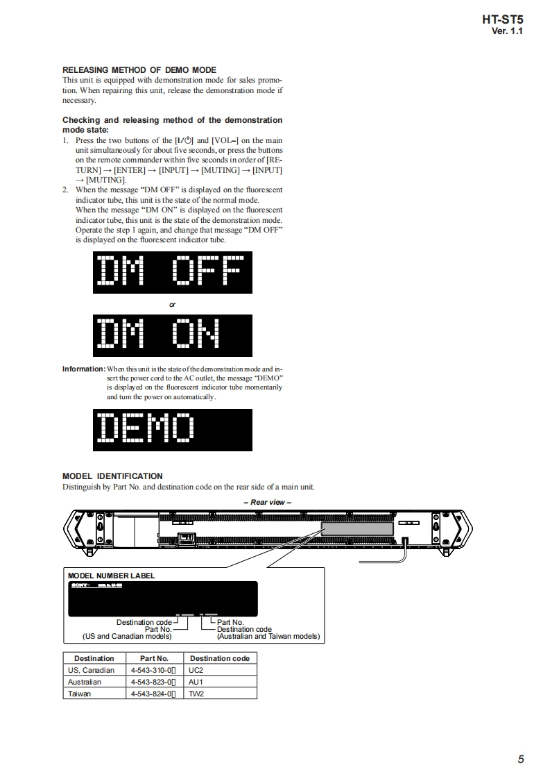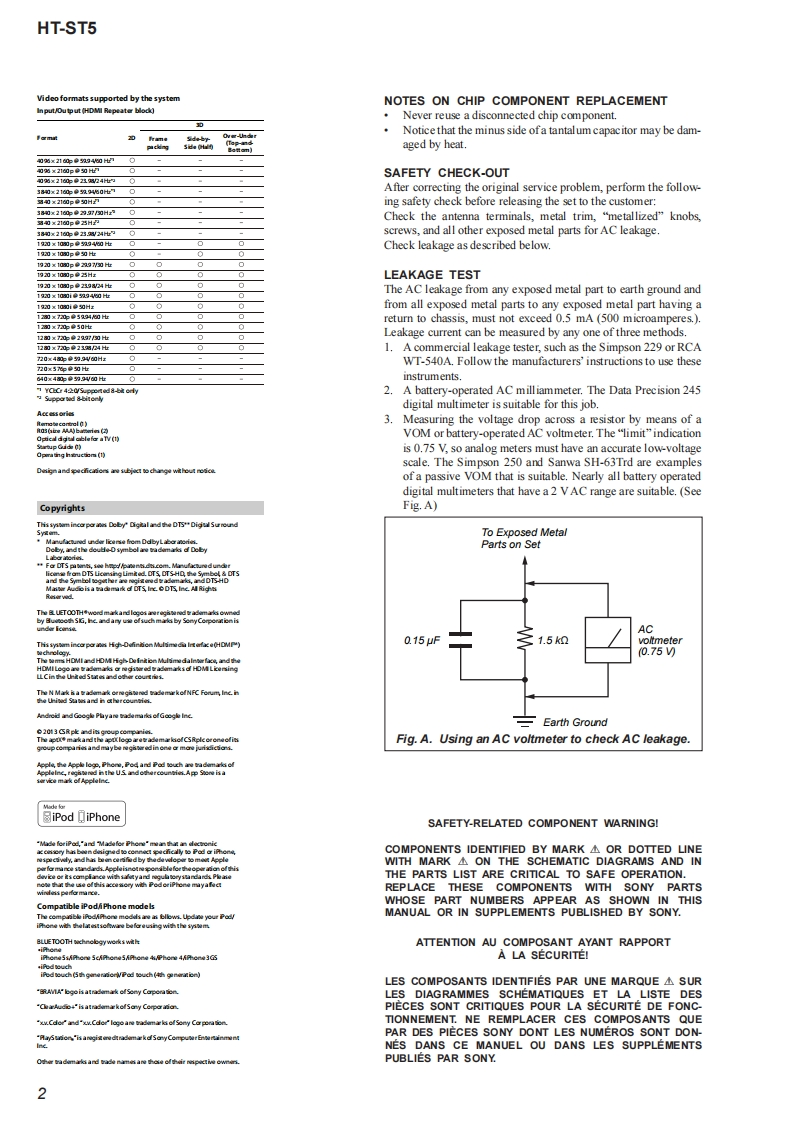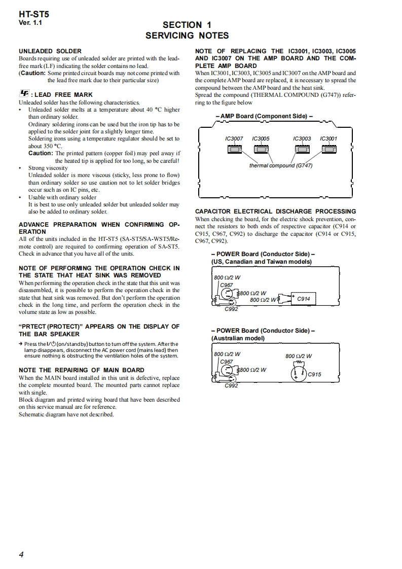 HT-ST5SA-ST5SERVICE MANUALUS ModelCanadian ModelVer.1.12014.12Australian ModelTaiwan ModelAll of the units included in the HT-ST5(SA-ST5/SA-WST5/Remote control)are required to con-fimming operation of SA-ST5.Check in advancethat you have all of the units.Note:Be sure to keep your PC used for service andPhoto:SA-ST5checking of this unit always updated with thelatest version of your anti-virus software.In case a virus affected unit was found duringservice,contact your Service Headquarters.COMPONENT MODEL NAMEHT-ST5Bar Speaker(Active Speaker System)SA-ST5Subwoofer(Active Subwoofer)SA-WST5Please refer to service manual separately issued for Subwoofer.SPECIFICATIONSAmplifier sectionUT AD TOTA MAMONC STOO0VAC.USand CmFTOw器ao0eePOWER OUTPUT acBLUETOOTH Sundby mede 0.5 Wees6产81080智0mm058ax434×434MFOMER CUUTbwwn dovice,magrecfidds around amicrow own,suiccicity,cod道小enup5an罐ia%pning syiom,a前2x1时mmx16mm(058n×4inX458i时aedMaseg(3 71Wireless transmittersection4)sberdcede5)Adarcad hadio Coding.Thee 3 jadksan idortcl.thing ayofthom msno dferncodBLUETOOTH sectionDigital audio input formats supported by the system品Rag o oipidanc0d上yOgaCenterspeaker blockpd北DiguJIS-HD Low BeMa6的Fulrange spe atsym Acou suspirsionMab5p8r点88 conypContinued on next page-HT-ST5SOUND BARSA-ST5ACTIVE SPEAKER SYSTEM9-896-025-022014L33-1Sony Corporation©2014.12SONYPublished by Sony Techno Create Corporation
