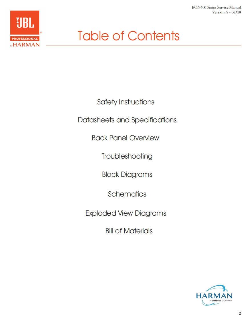 JBL_EON_600_Series_ServiceManual_verA维修手册电器原理图找手册网3天前发布关注私信9.46MB36页027JBL_EON_600_Series_ServiceManual_verA维修手册电器原理图此内容为付费资源,请付费后查看¥19¥21黄金会员免费钻石会员免费立即购买您当前未登录!建议登陆后购买,可保存购买订单付费资源 第1页 / 共36页 第2页 / 共36页 第3页 / 共36页 第4页 / 共36页 第5页 / 共36页 第6页 / 共36页 第7页 / 共36页 第8页 / 共36页 第9页 / 共36页 第10页 / 共36页 试读已结束,还剩26页,您可下载完整版后进行离线阅读 THE ENDJbl/Onkyo 文本预览 Version A-06/20JBLPROFESSIONALHARMANService ManualEON 600 SeriesTwo-Way Multipurpose Self-Powered Sound ReinforcementSelf-Powered Subwoofer·EON610·EON612·EON615·EON618SHARMANA SAMSUNG COMPANY 查看更多 收起部分 喜欢就支持一下吧收藏