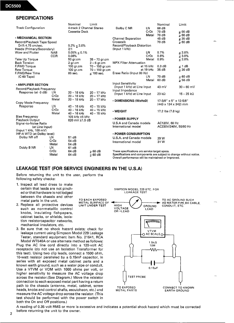 HarmanKardon-DC5500-tape-维修说明书手册含电器原理图